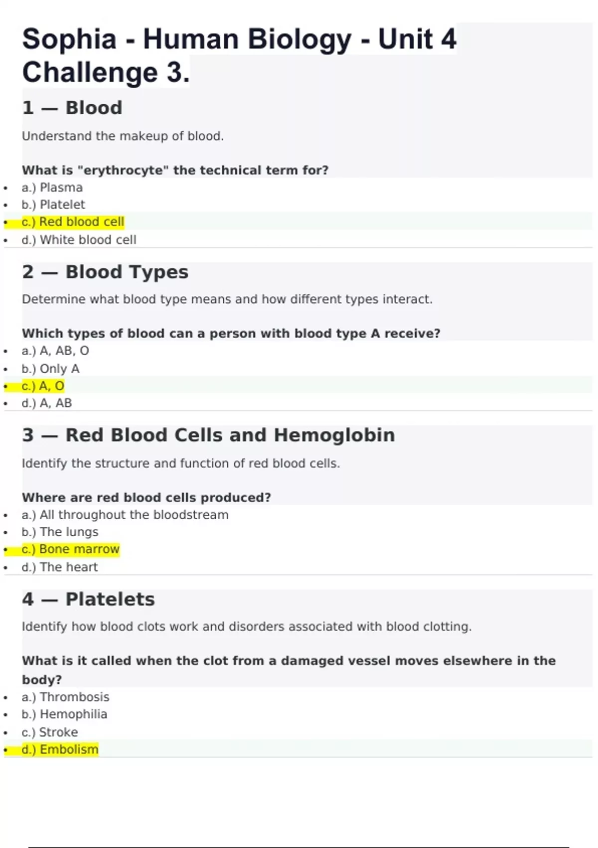 Sophia - Human Biology - Unit 4 Challenge 3. with questions and answers
