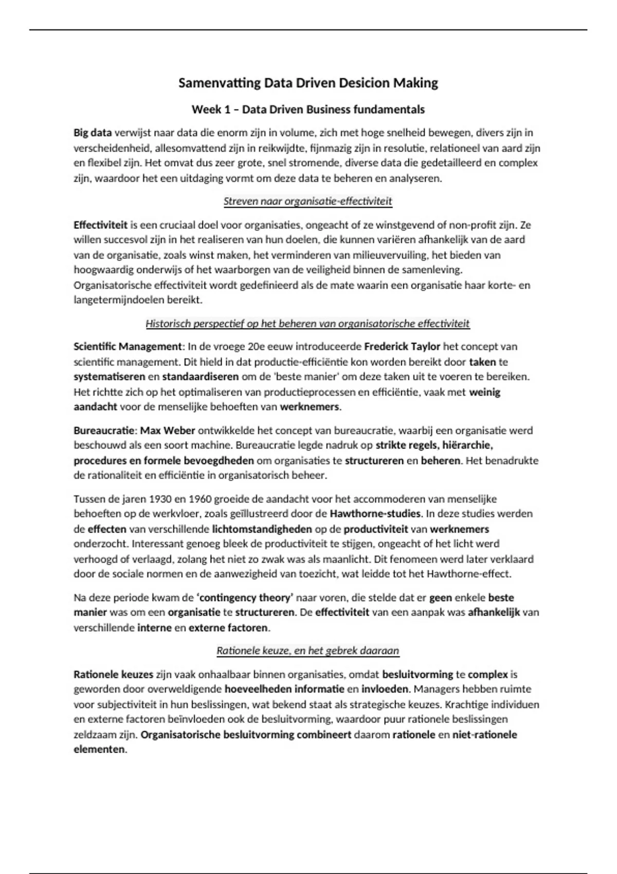 besluitvorming. Er wordt vermeld dat data-gedreven bedrijven ernaar streven om data te gebruiken