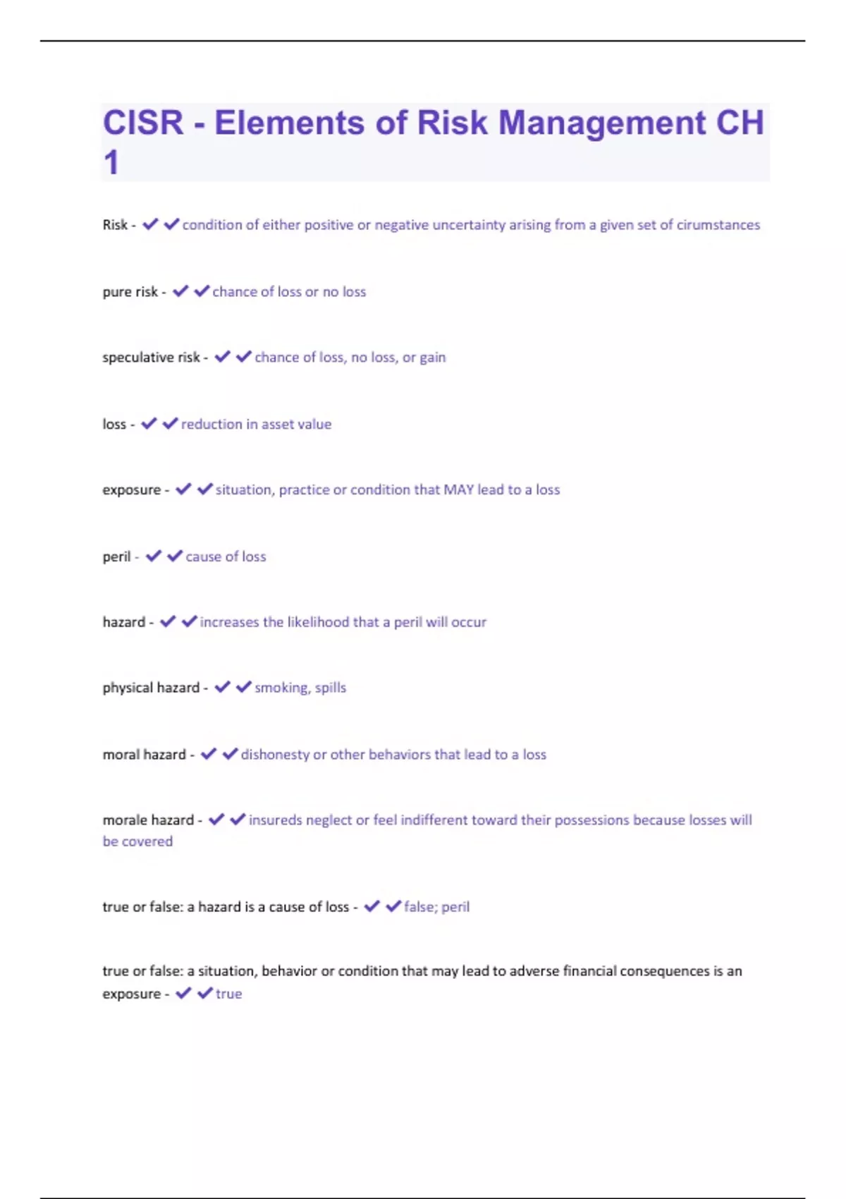 CISR - Elements of Risk Management CH 1 Questions With 100% Correct Answers.