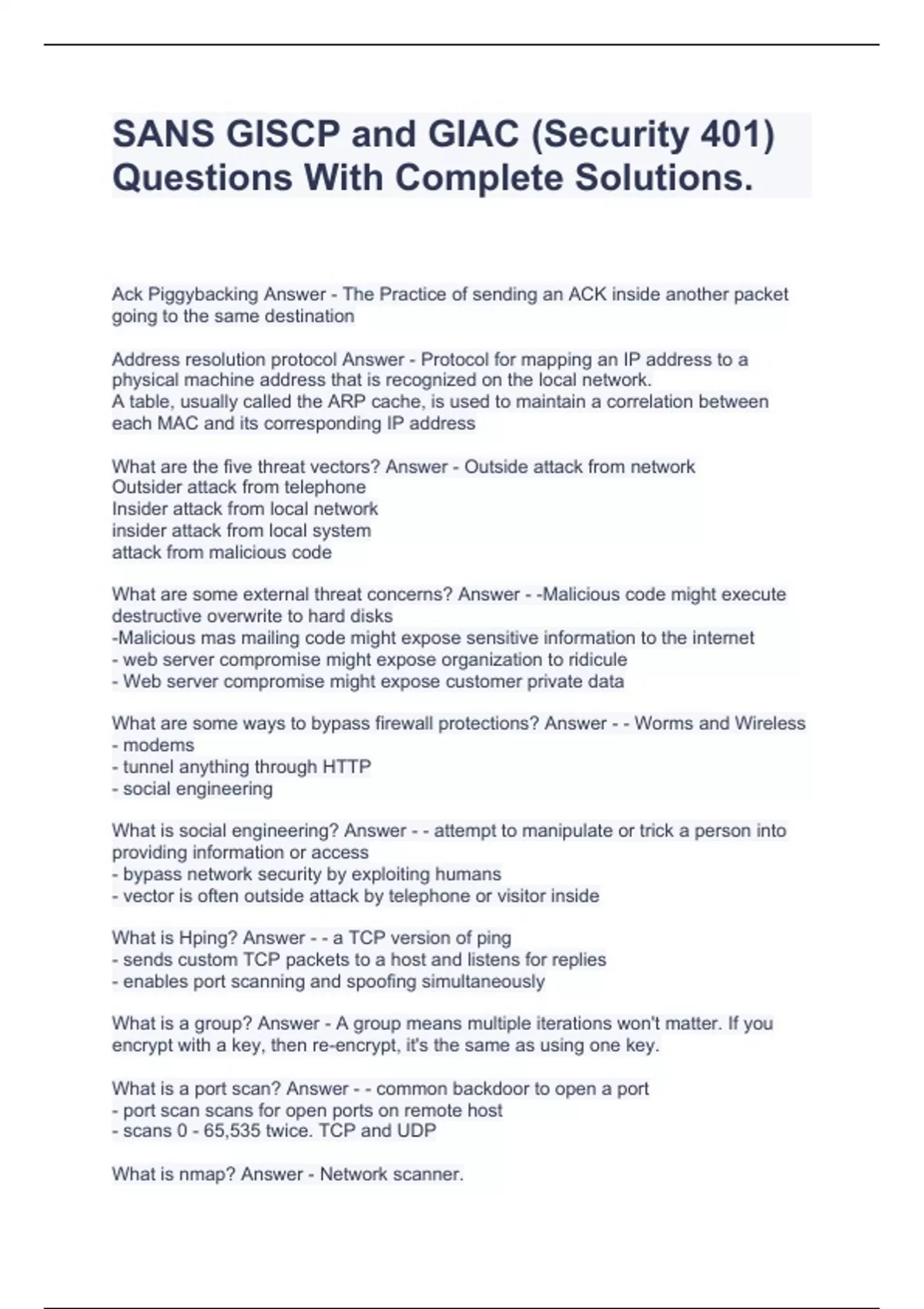 SANS GISCP and GIAC (Security 401) Questions With Complete Solutions.