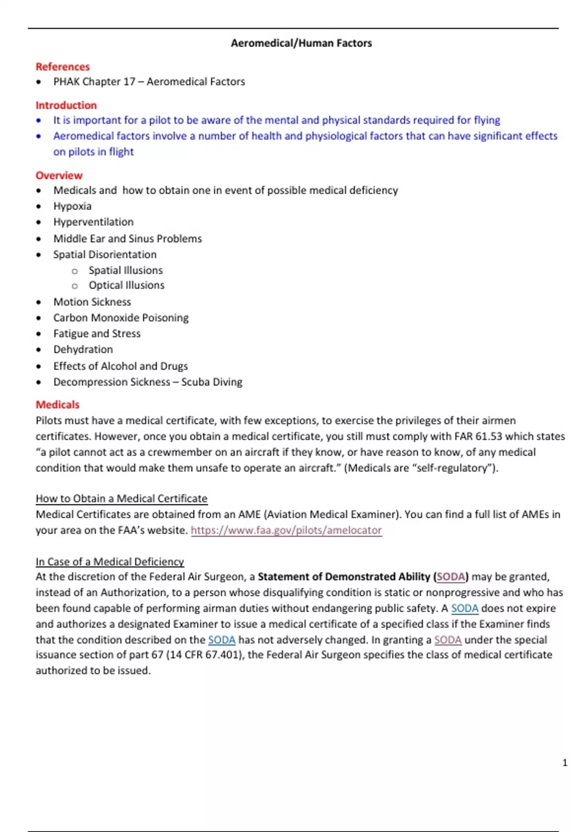 • It is important for a pilot to be aware of the mental and physical standards required for flying