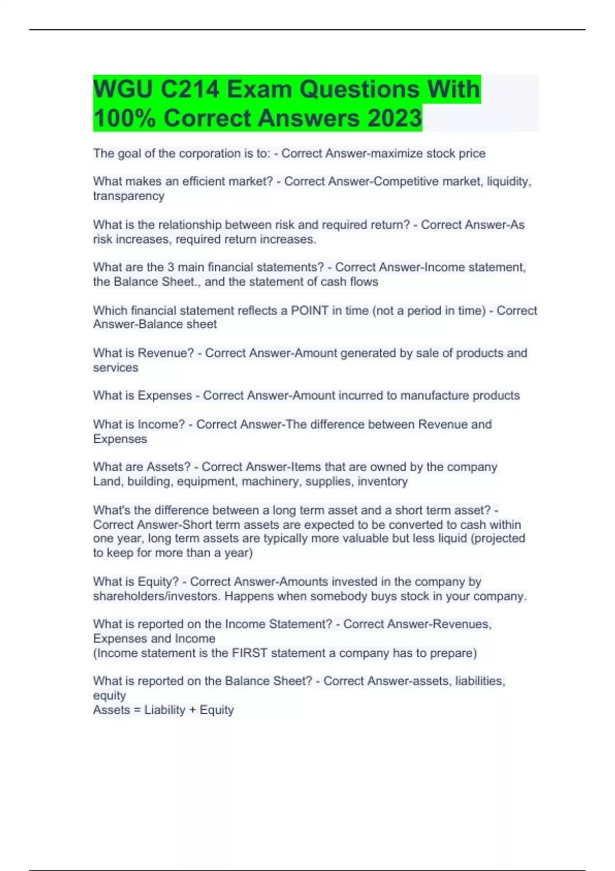 wgu c214 exam questions with 100 correct answers