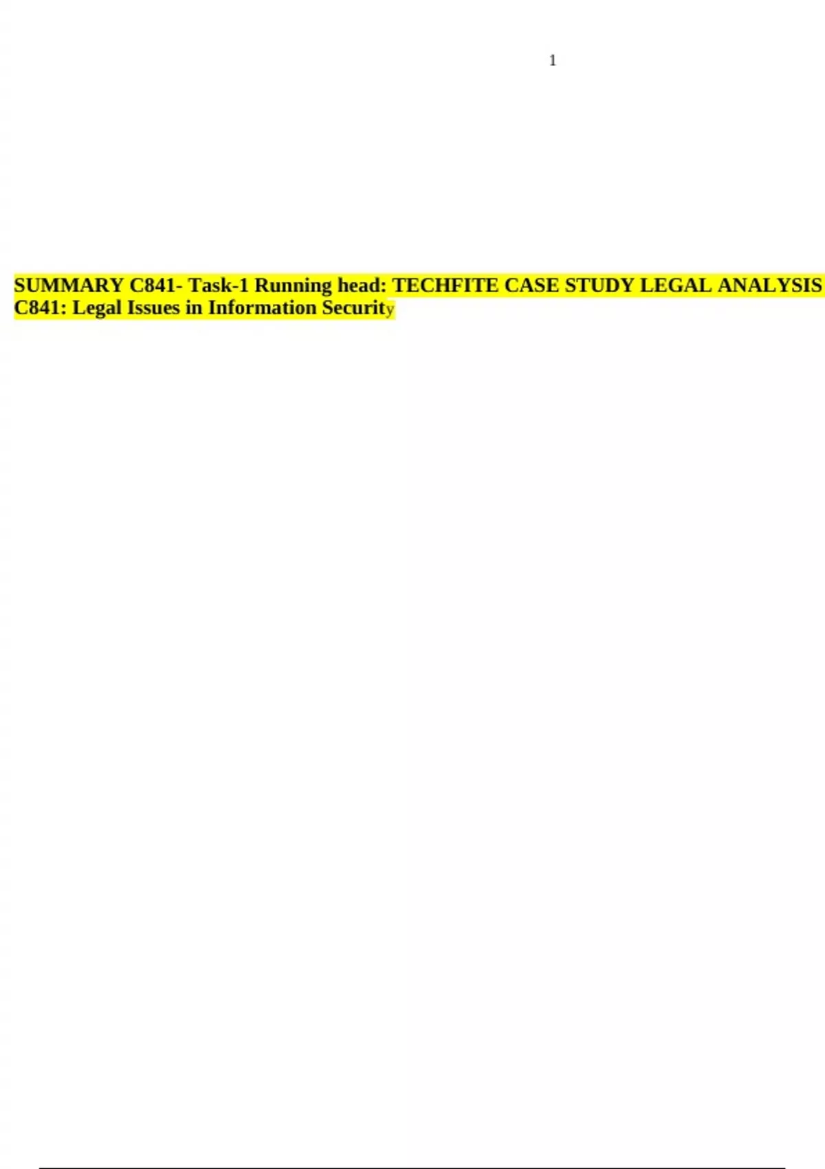 SUMMARY C841- Task-1 Running head: TECHFITE CASE STUDY LEGAL ANALYSIS C841: Legal Issues in Information Security