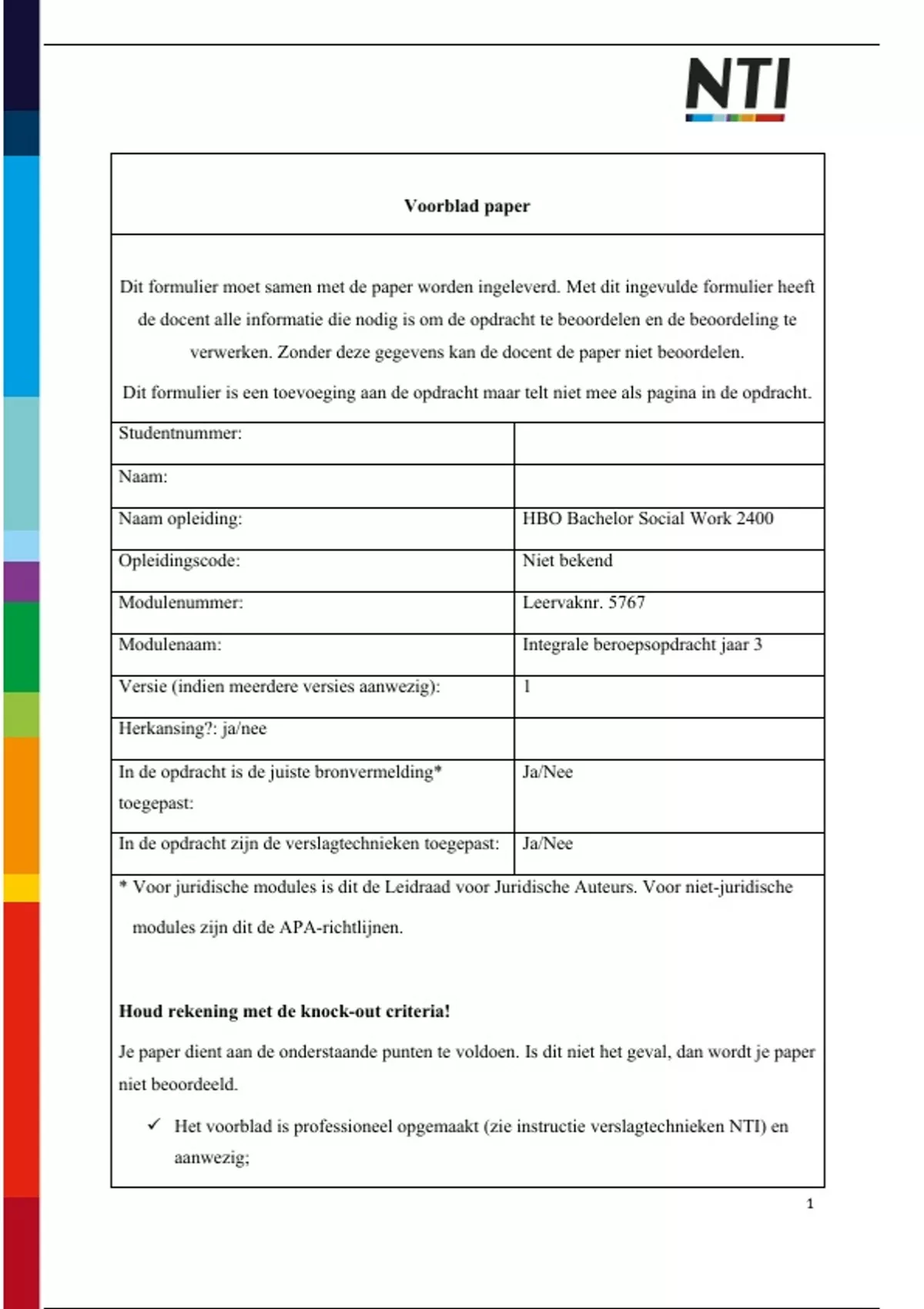 Dit formulier moet samen met de paper worden ingeleverd. Met dit ingevulde formulier heeft