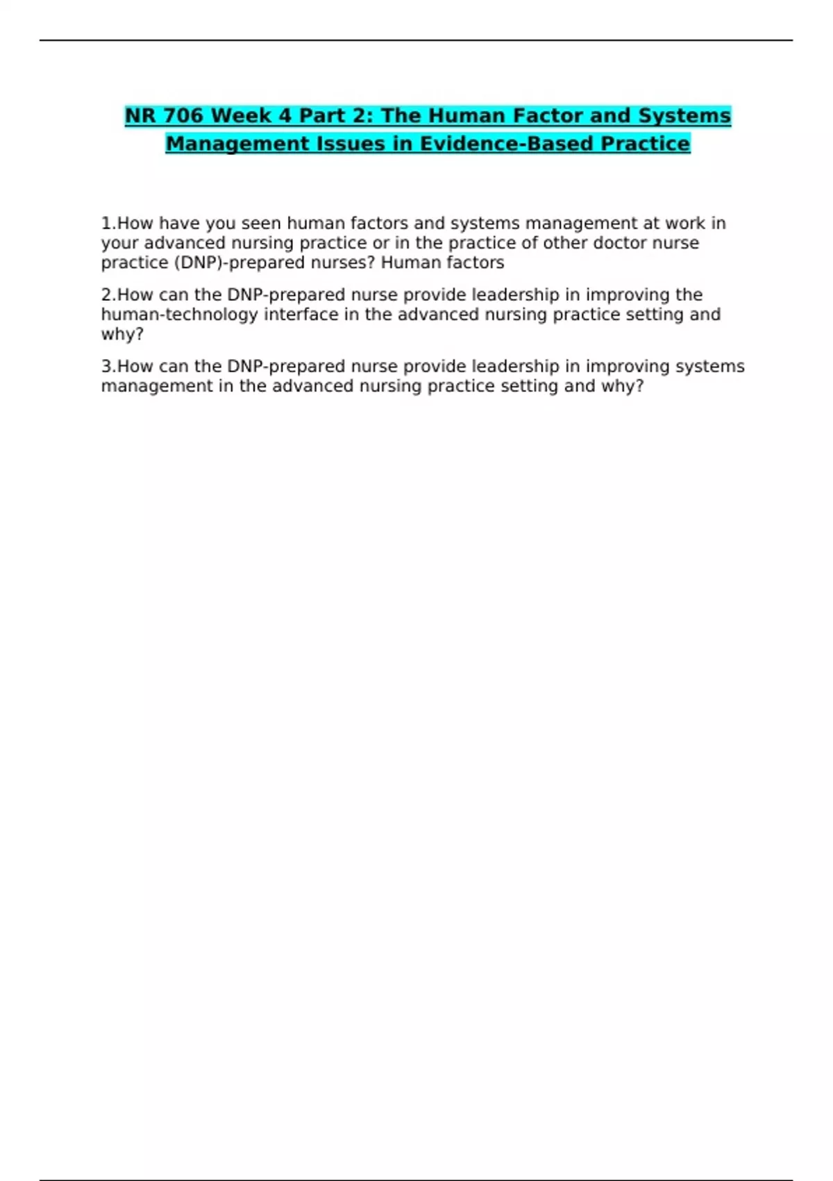 Summary NR 706 WEEK 4 PART 2 EXAMS CORRECTLY ANSWERED / LATEST UPDATE VERSION / GRADED A+