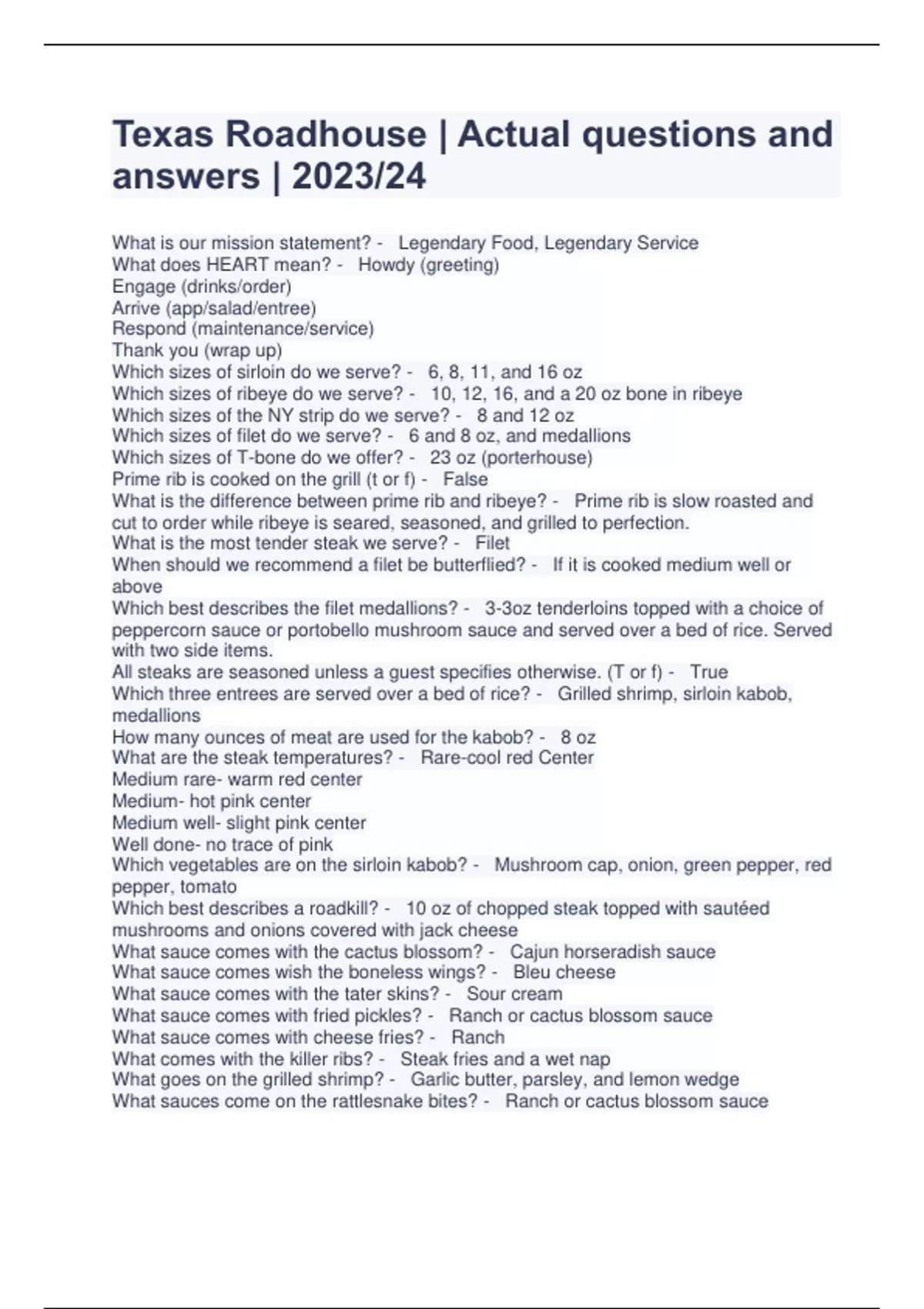 Texas Roadhouse | Actual questions and answers | 2023/24