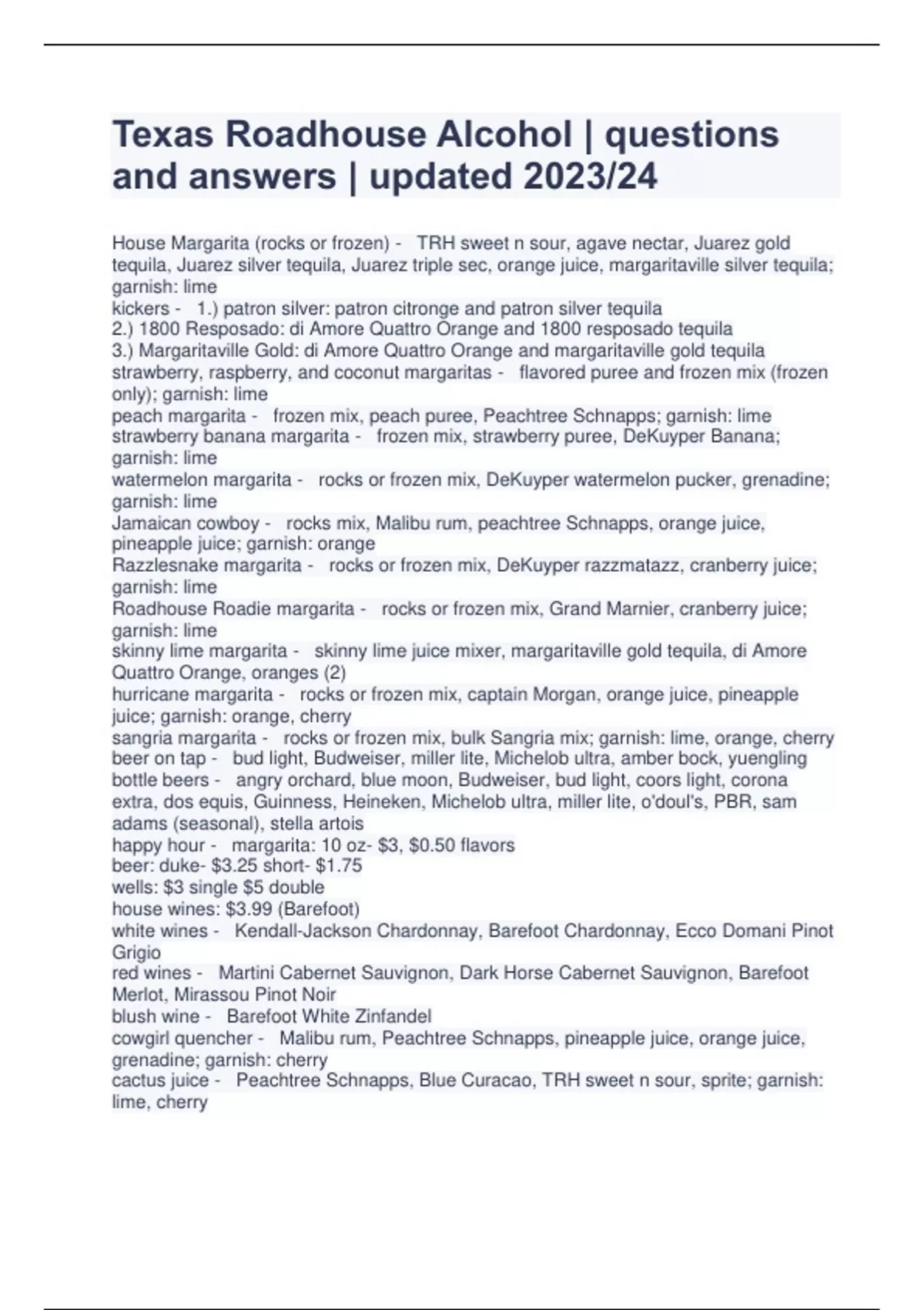 Texas Roadhouse Alcohol | questions and answers | updated 2023/24