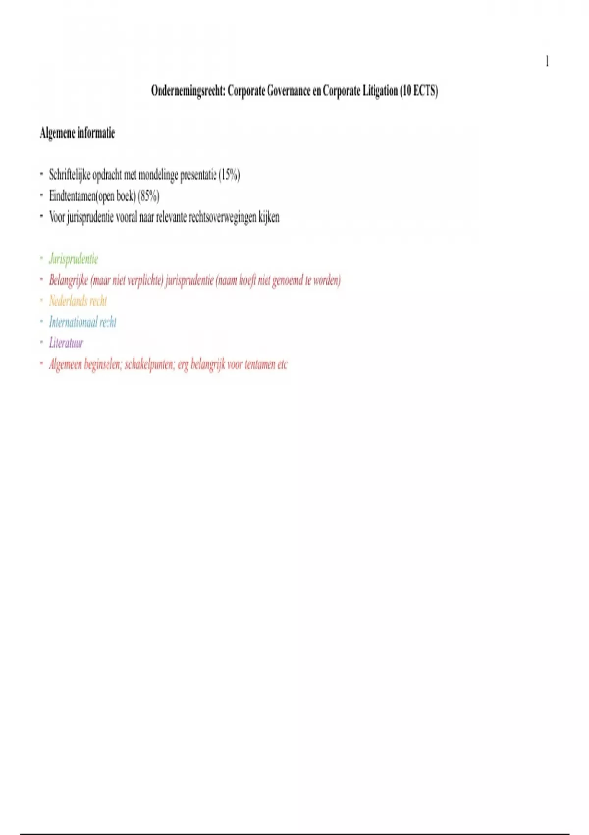 Ondernemingsrecht: Corporate Governance en Corporate Litigation (10 ECTS)
