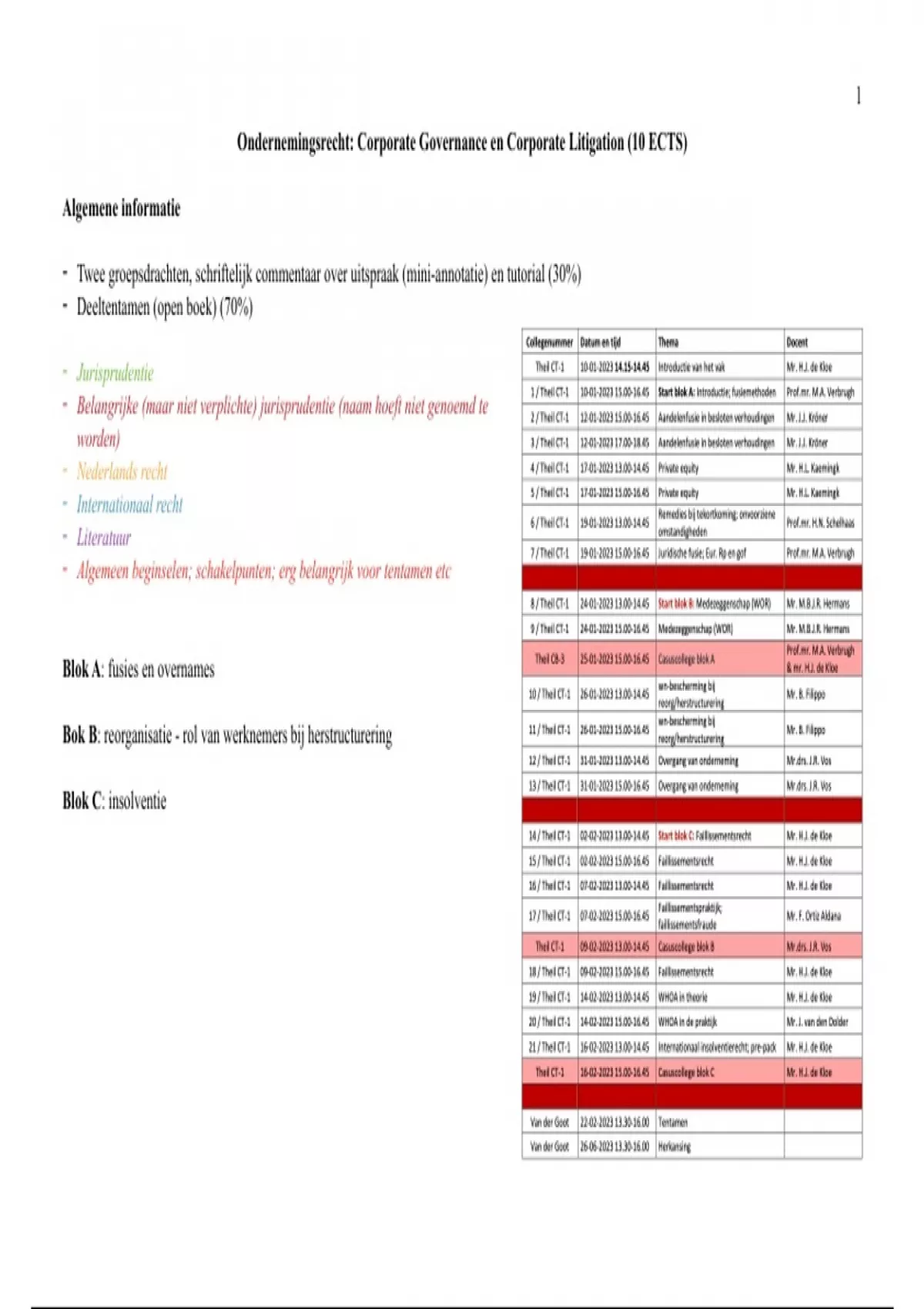 Ondernemingsrecht: Corporate Governance en Corporate Litigation (10 ECTS)