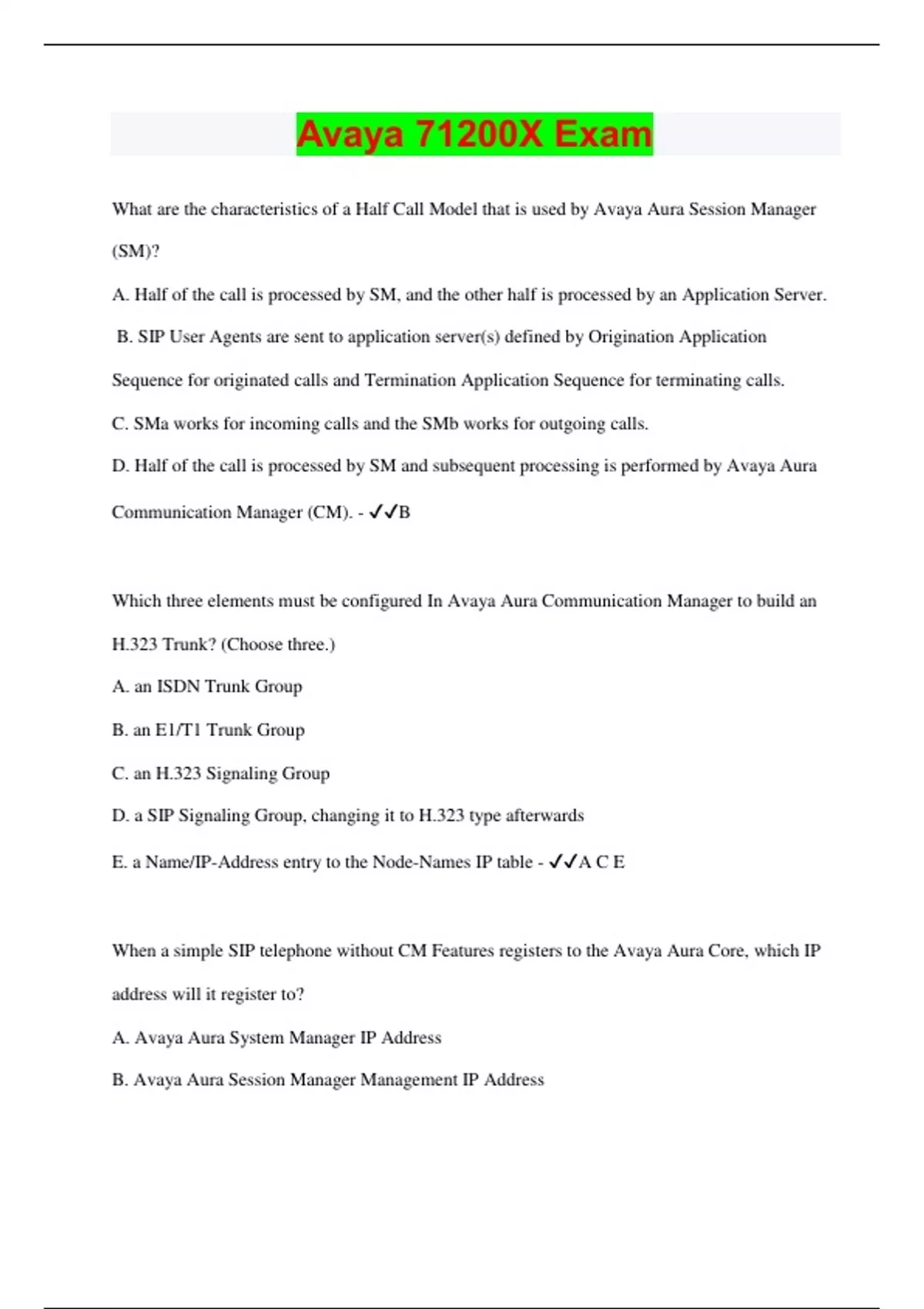 Avaya 71200X Exam | Questions with 100% Correct Answers | Latest Update 2024 | Verified