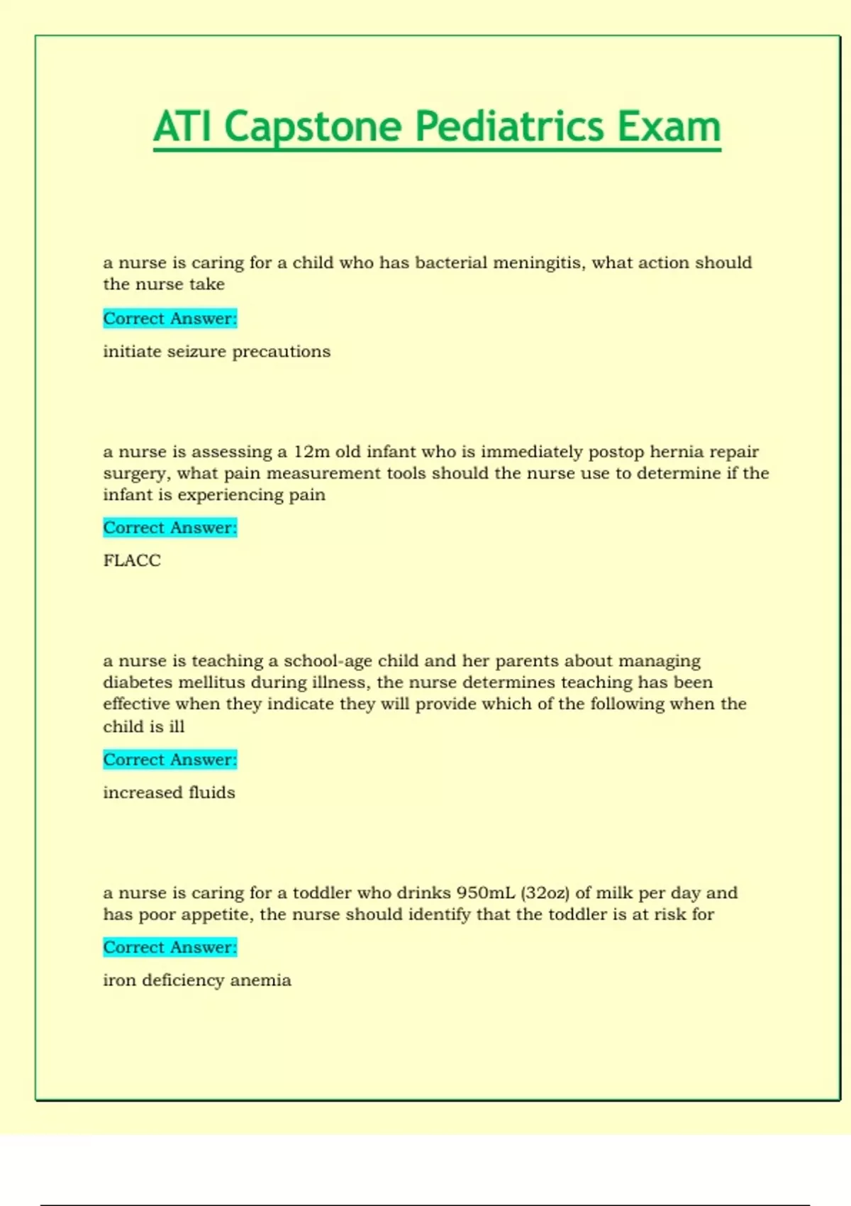 ATI Capstone Pediatrics Questions & Answers Rated A+