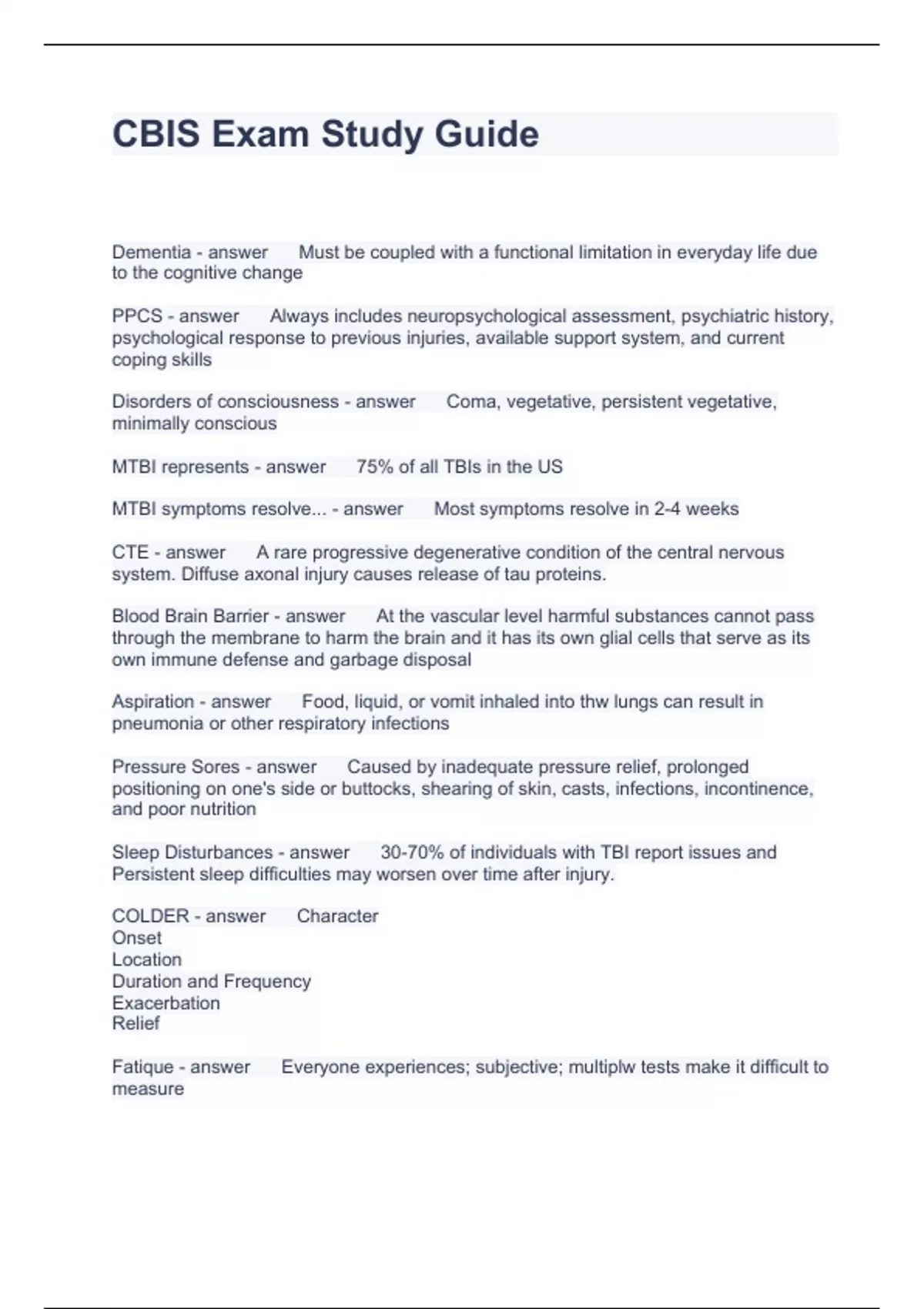 CBIS Exam Study Guide