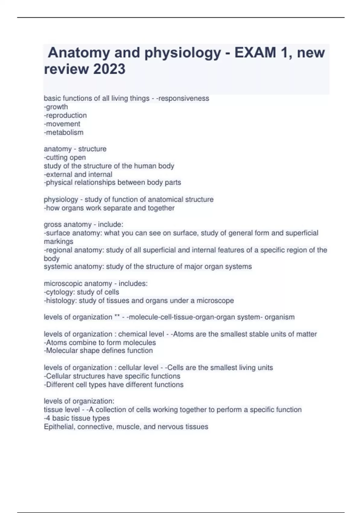 Anatomy and physiology - EXAM 1, new review 2023.
