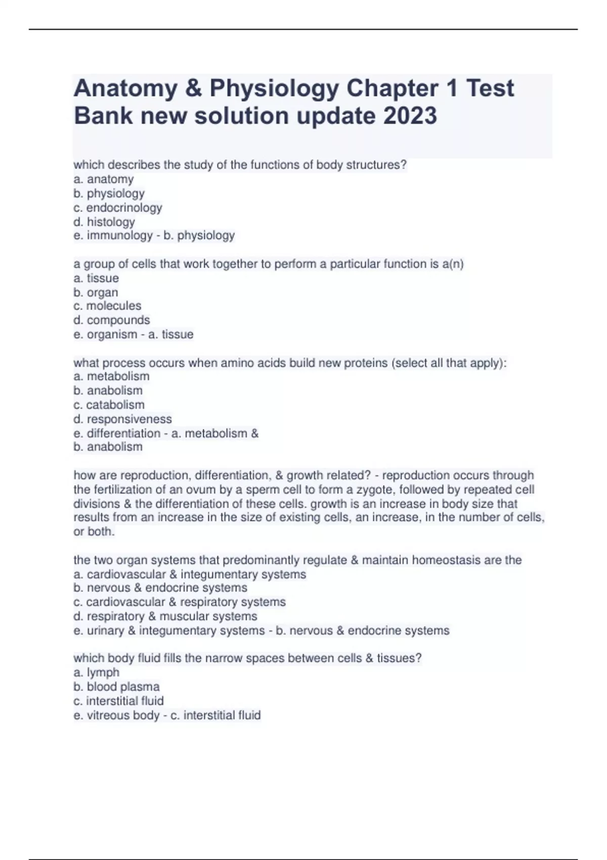 Anatomy & Physiology Chapter 1 Test Bank new solution update 2023.