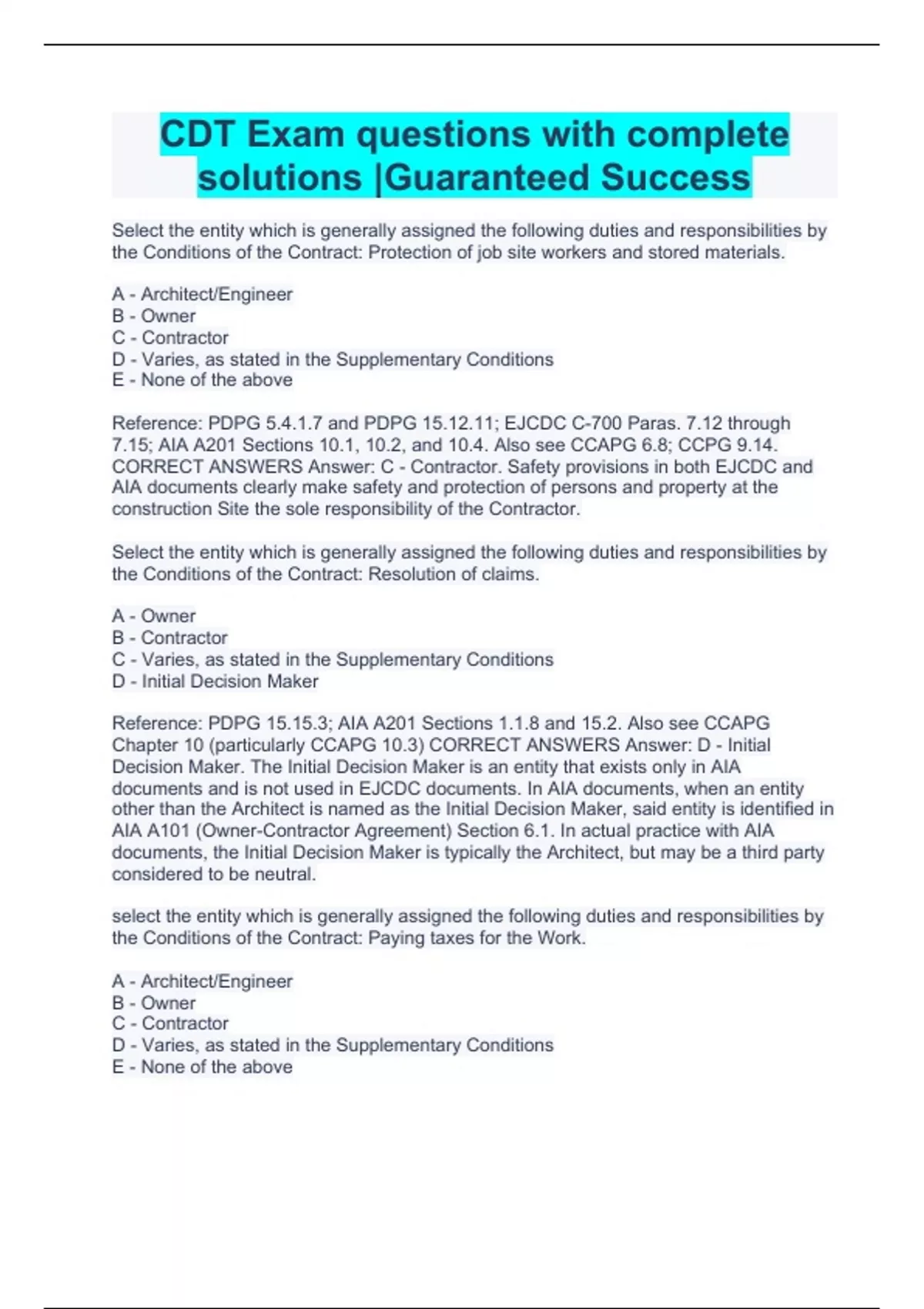 cdt exam questions with complete solutions guaran