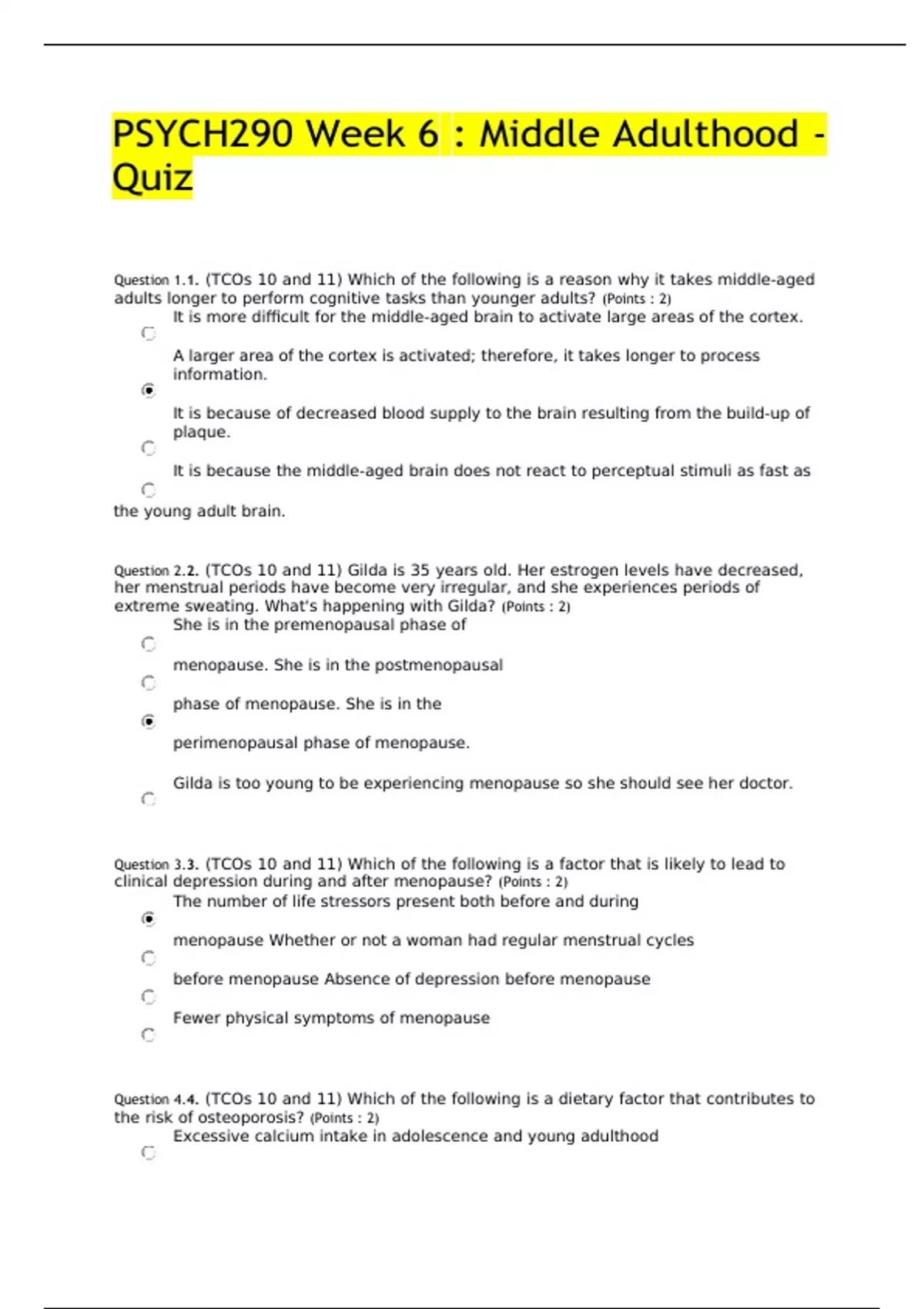 psych290 week 6 middle adulthood quiz