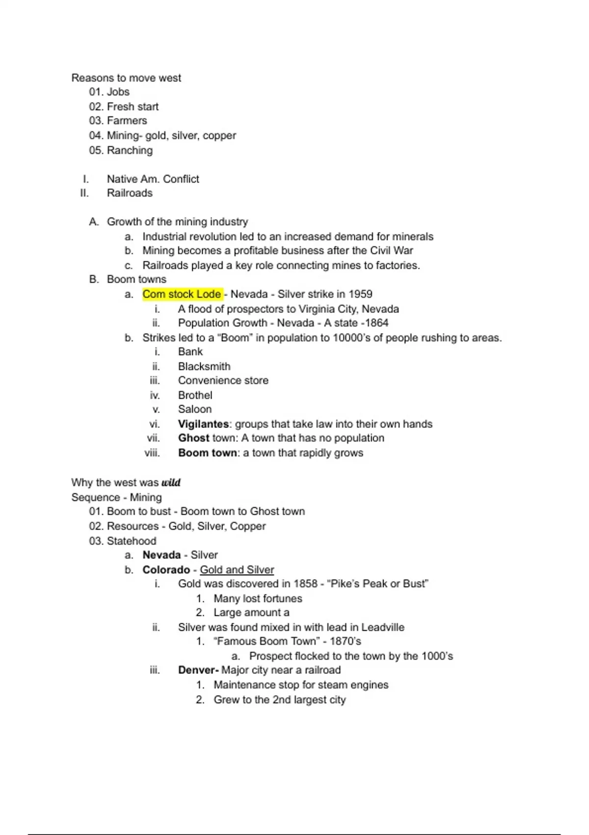 These two pages of class notes cover topics relating to the Western Settlement that occurred from 2865 to 1900. You'll review why people traveled west, boom towns, and what made the west "wild". Important vocabulary and topics are bolded and or highlighted for better finding and navigation. Carefully organized and typed, these class notes are great for review.