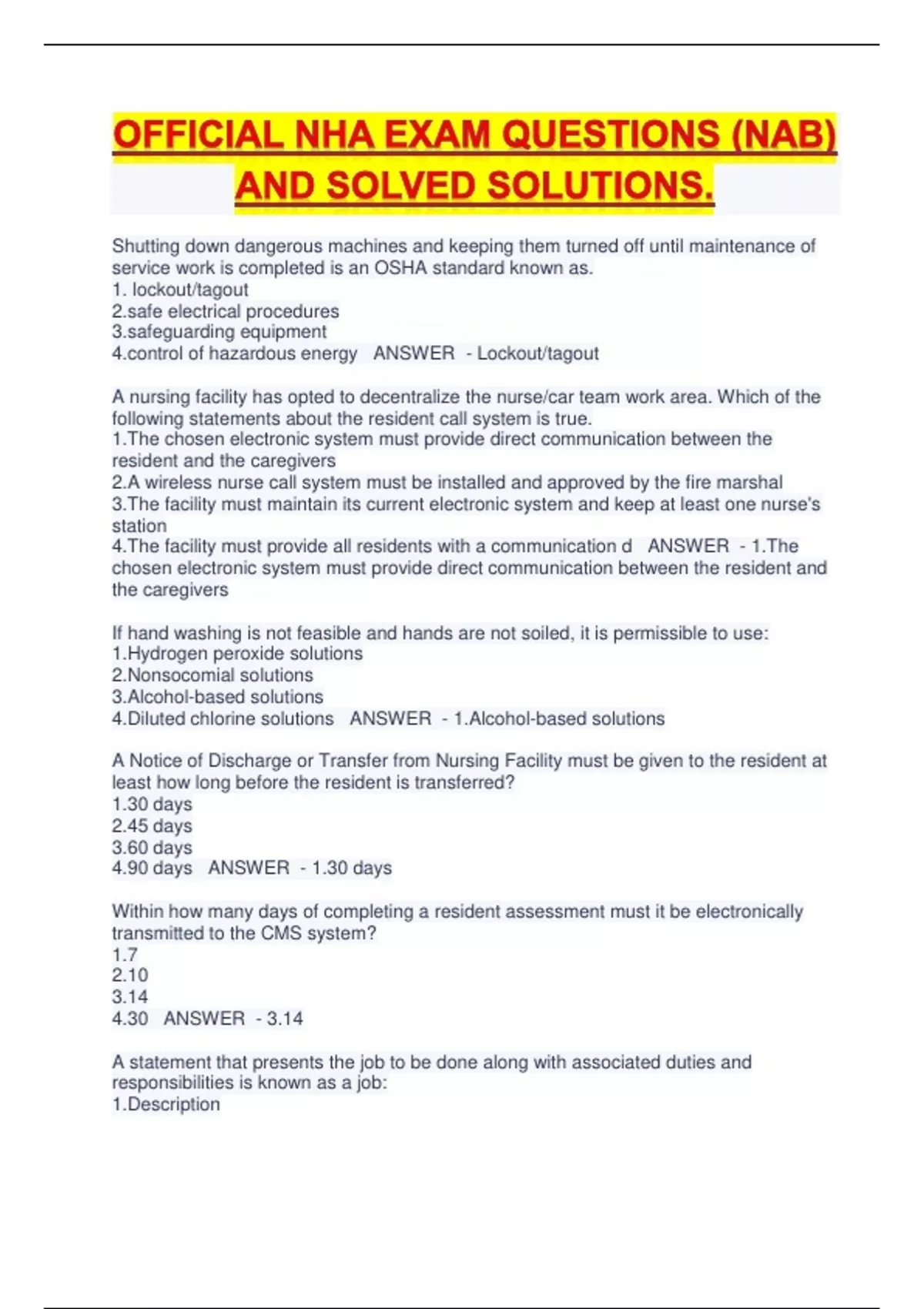 OFFICIAL NHA EXAM QUESTIONS (NAB) AND SOLVED SOLUTIONS.