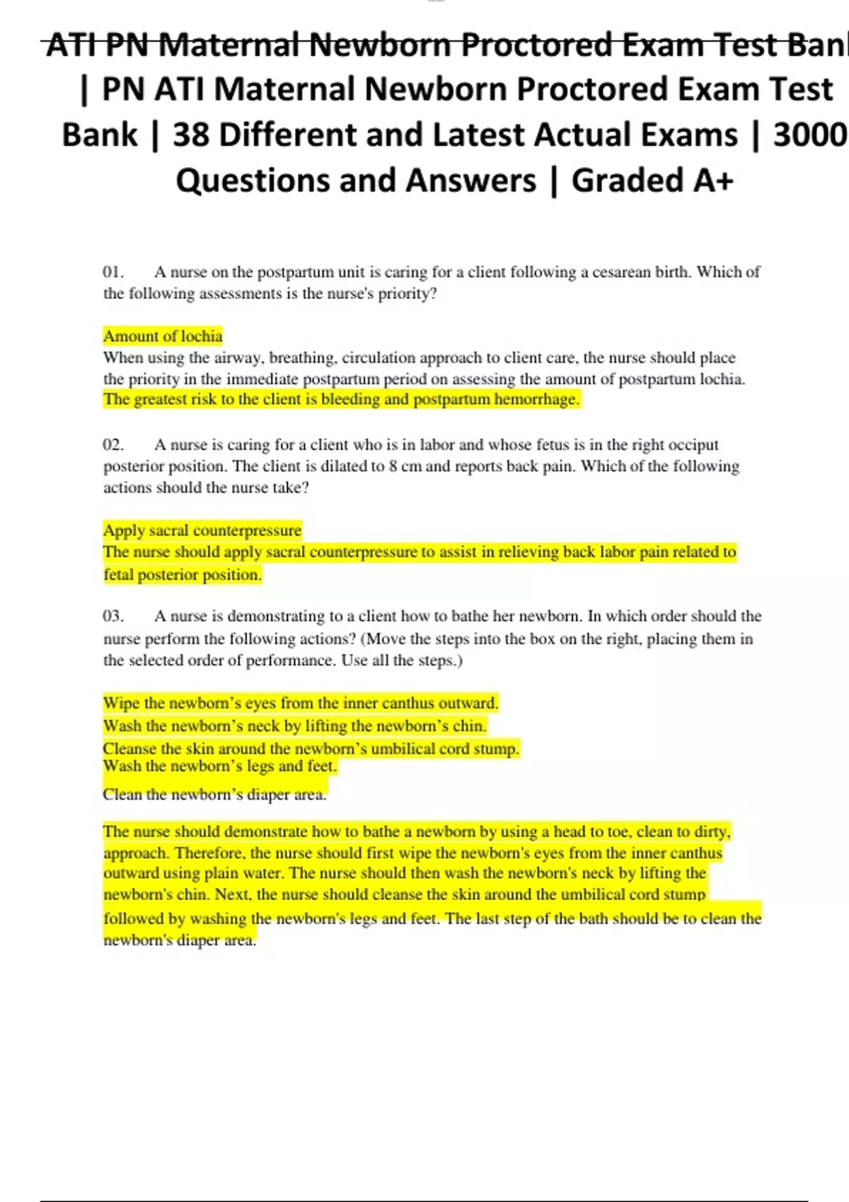 ATI PN Maternal Newborn Proctored Exam Test Bank | PN ATI Maternal Newborn Proctored Exam Test Bank | 38 Different and Latest Actual Exams | 3000 Questions and Answers | Graded A+