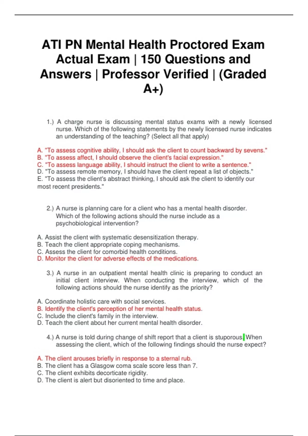 ATI PN Mental Health Proctored Exam Actual Exam | 150 Questions and Answers | Professor Verified | (Graded A+)
