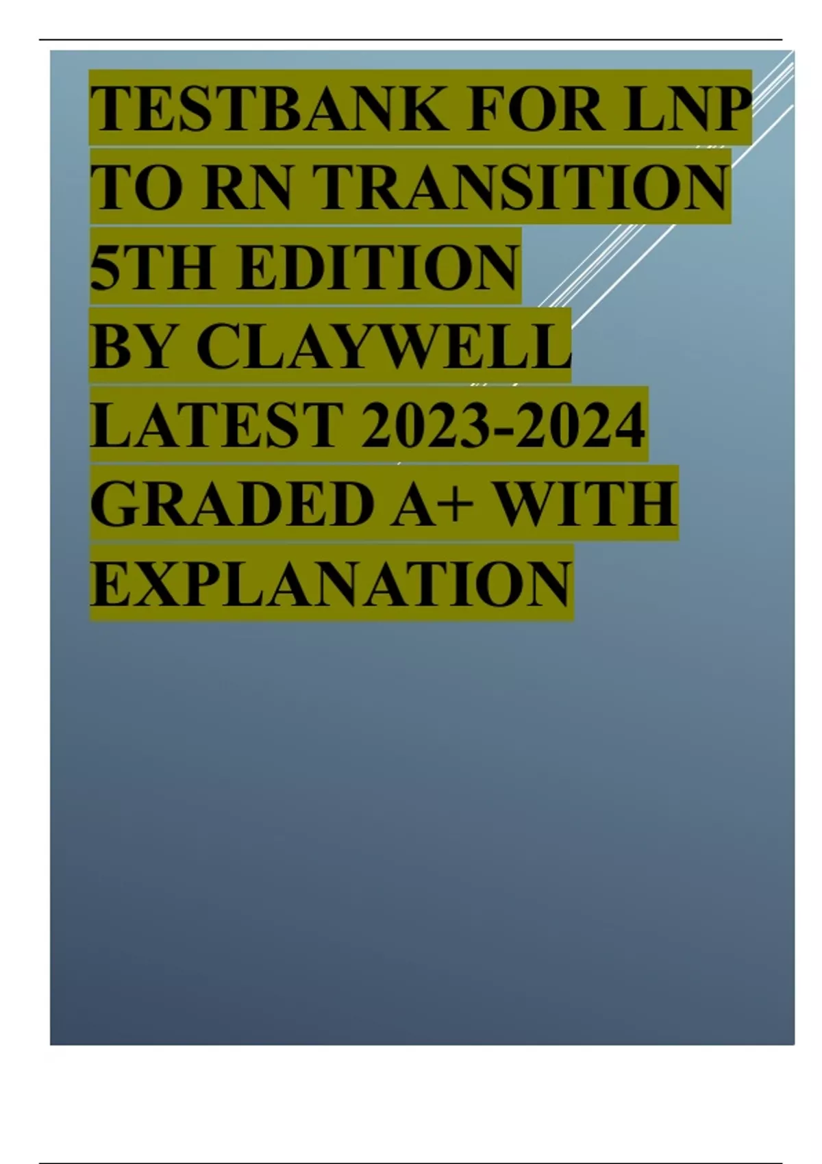 TEST BANK FOR LNP TO RN TRANSITION 5TH EDITION BY CLAYWELL LATEST GRADED A+WITH EXPLANATION.pdf