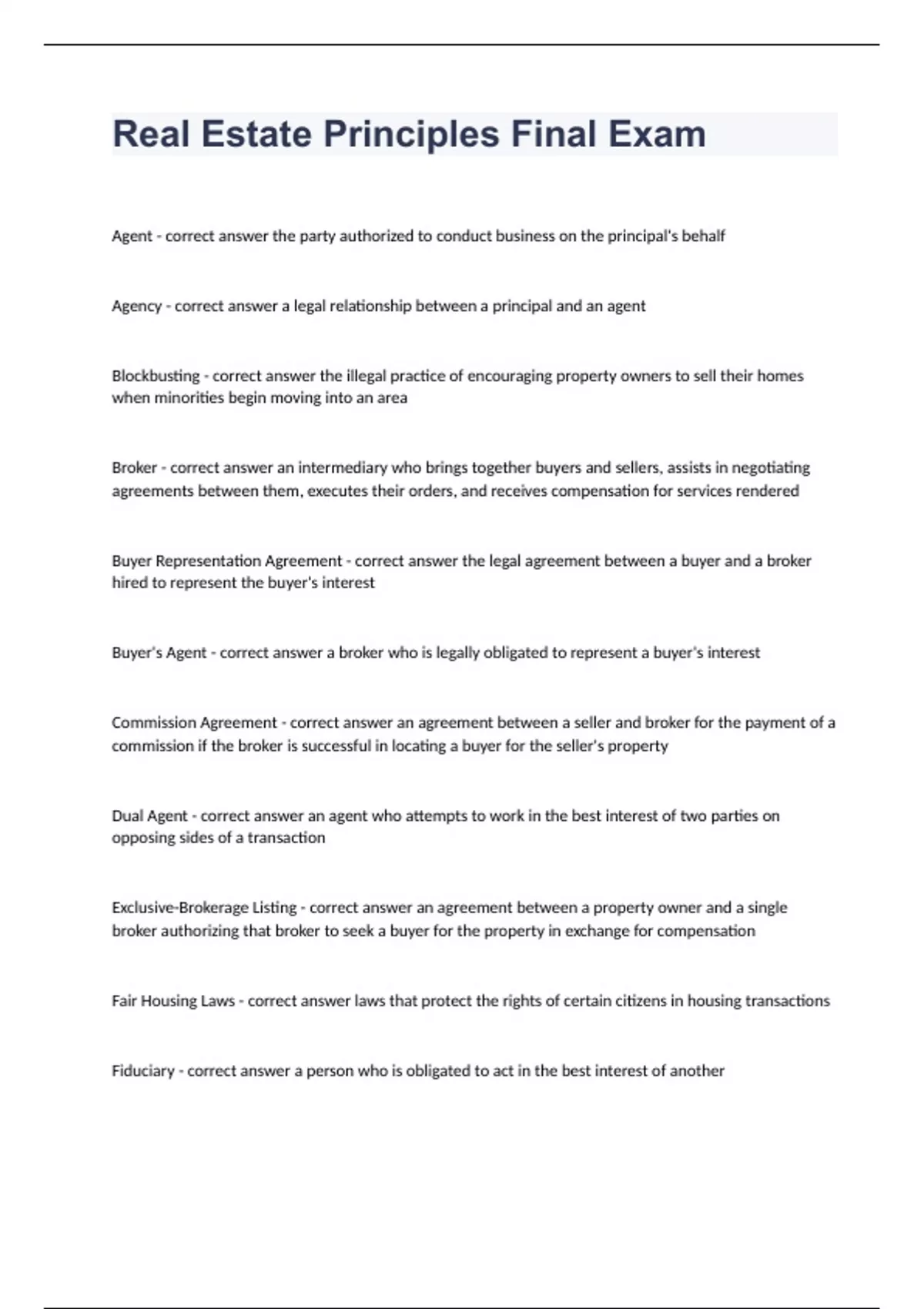 Real Estate Principles Final Exam questions & answers graded A+ 2023/2024