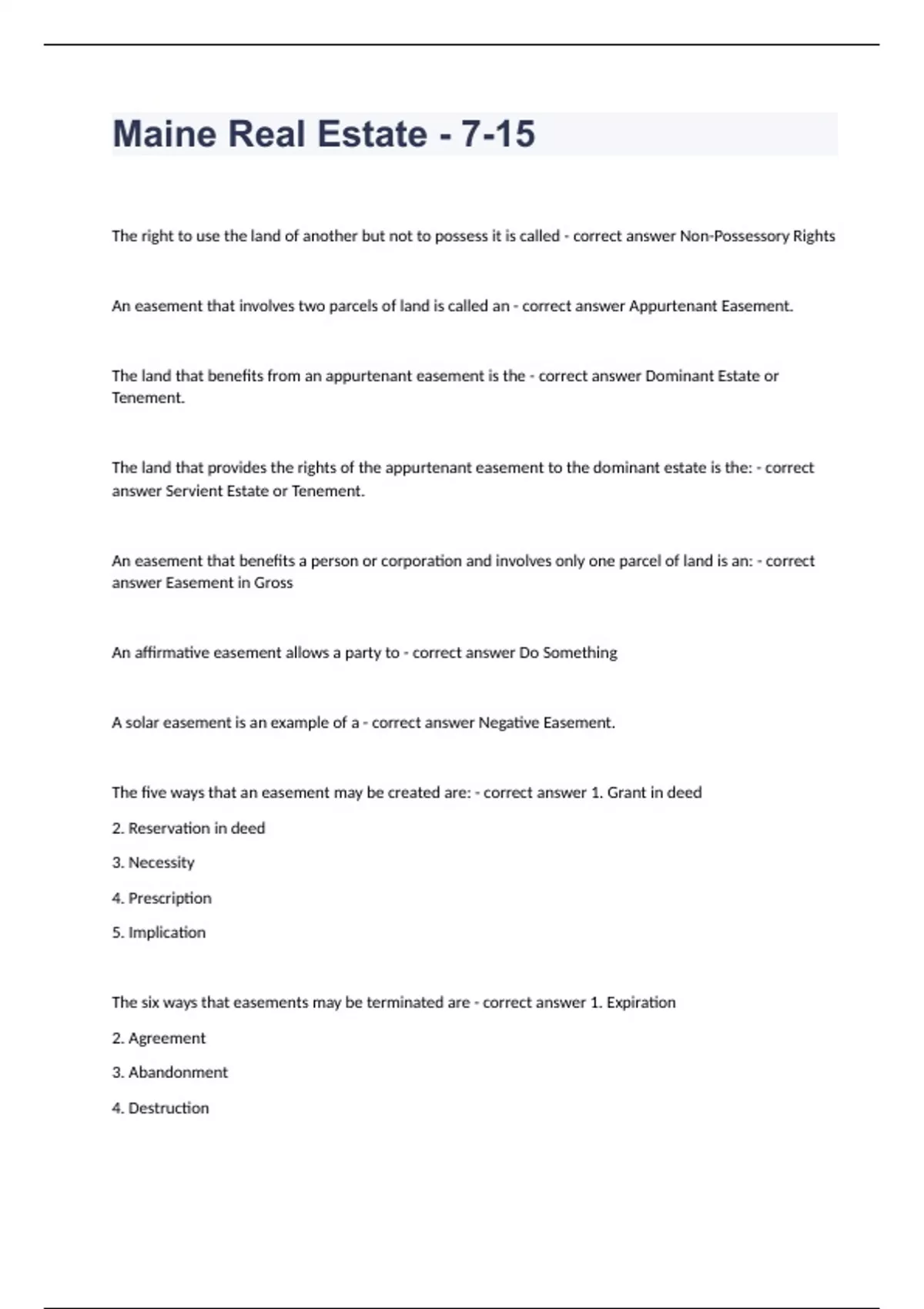 Maine Real Estate - 7-15 questions n answers graded A+ 2023/2024
