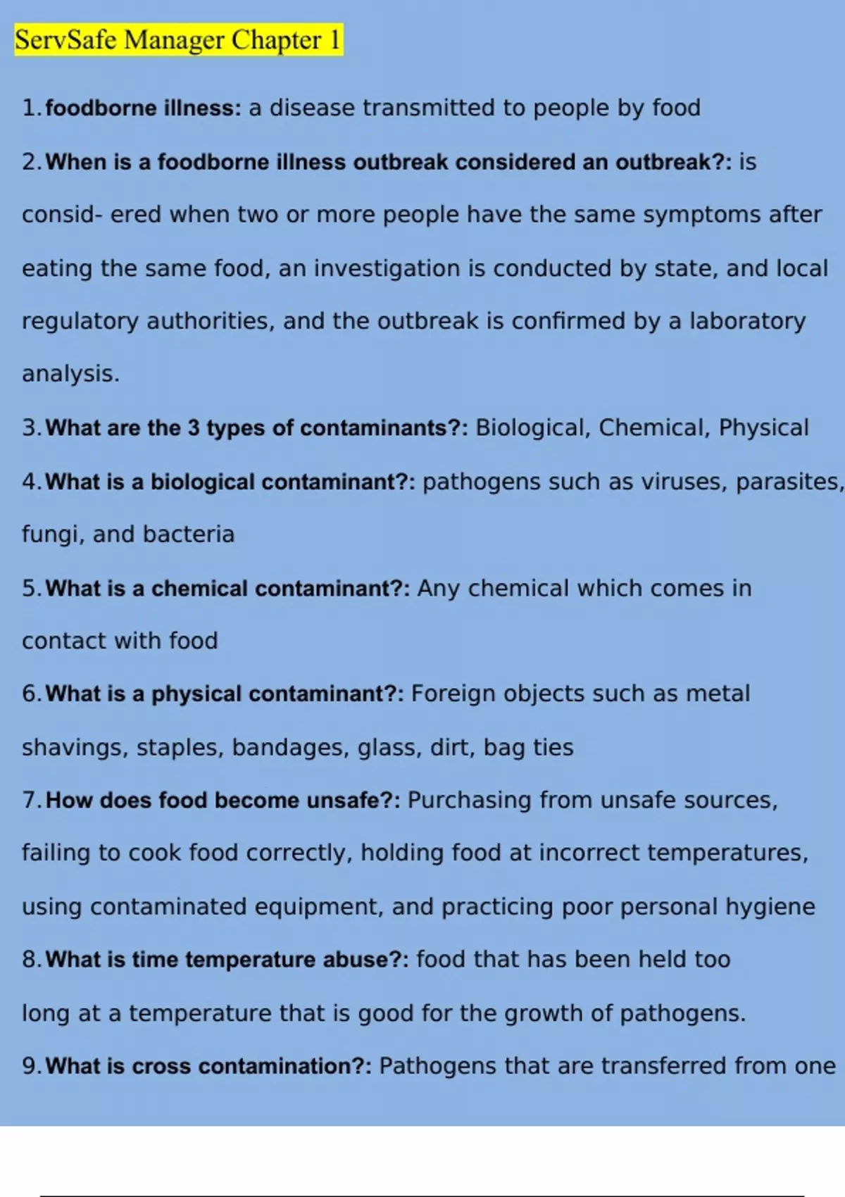ServSafe Manager Chapter 1 Questions with 100% Correct Answers | Verified | Updated