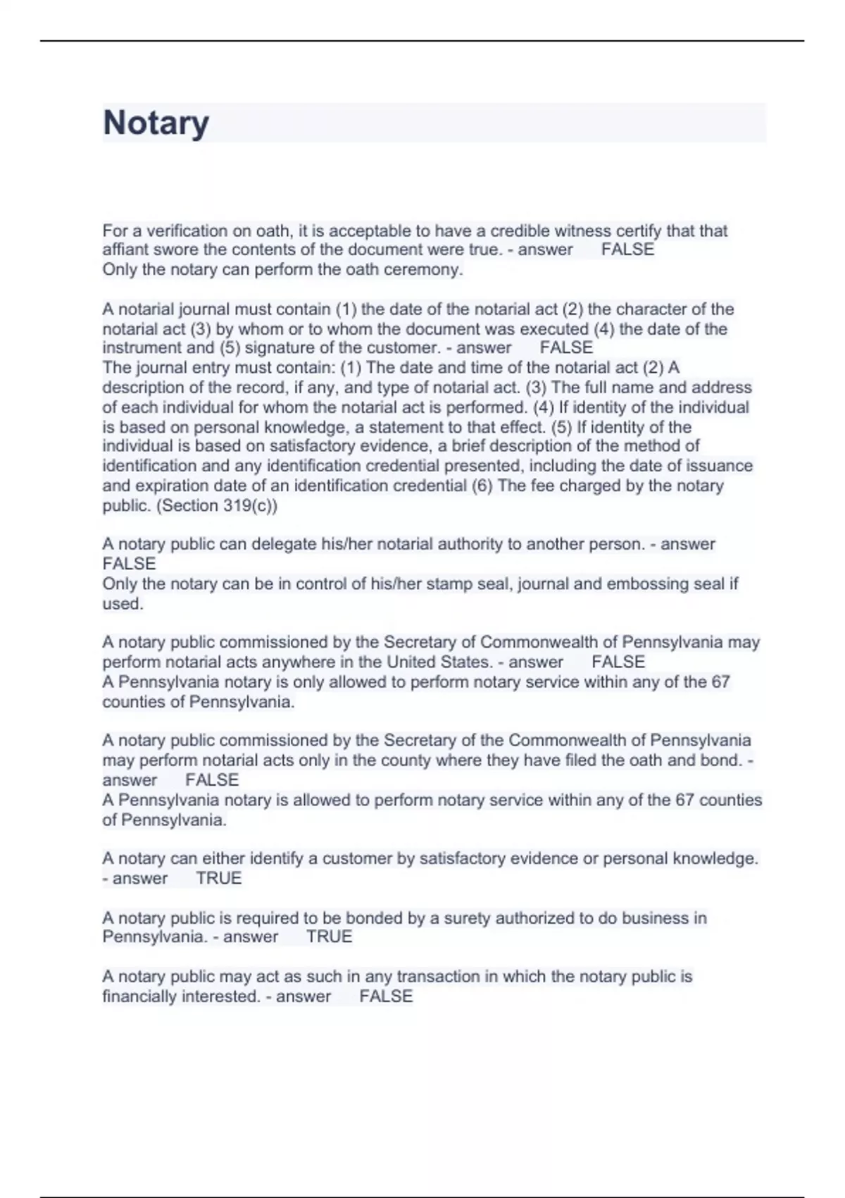 Exam of 4 pages for the course PA NOTARY at PA NOTARY (Notary)