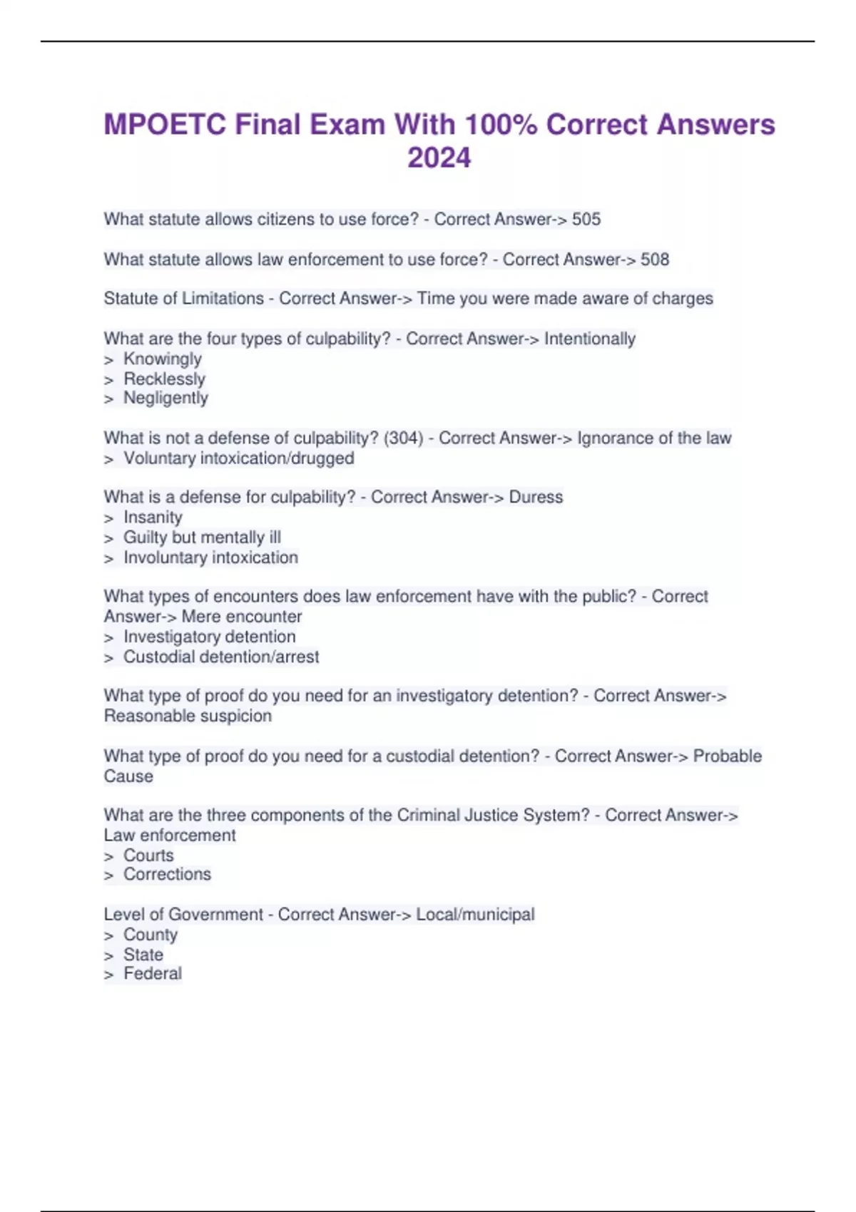 MPOETC Final Exam With 100% Correct Answers 2024
