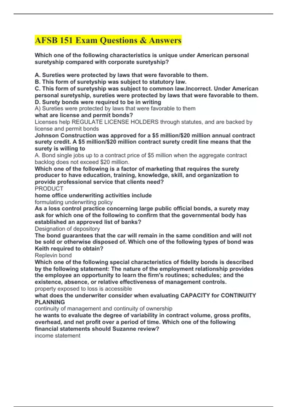 C. This form of suretyship was subject to common law.Incorrect. Under American