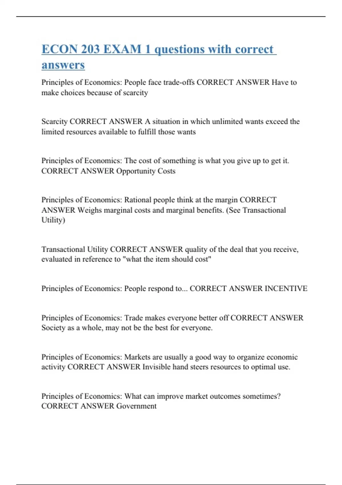 ECON 203 EXAM 1 questions with correct answers