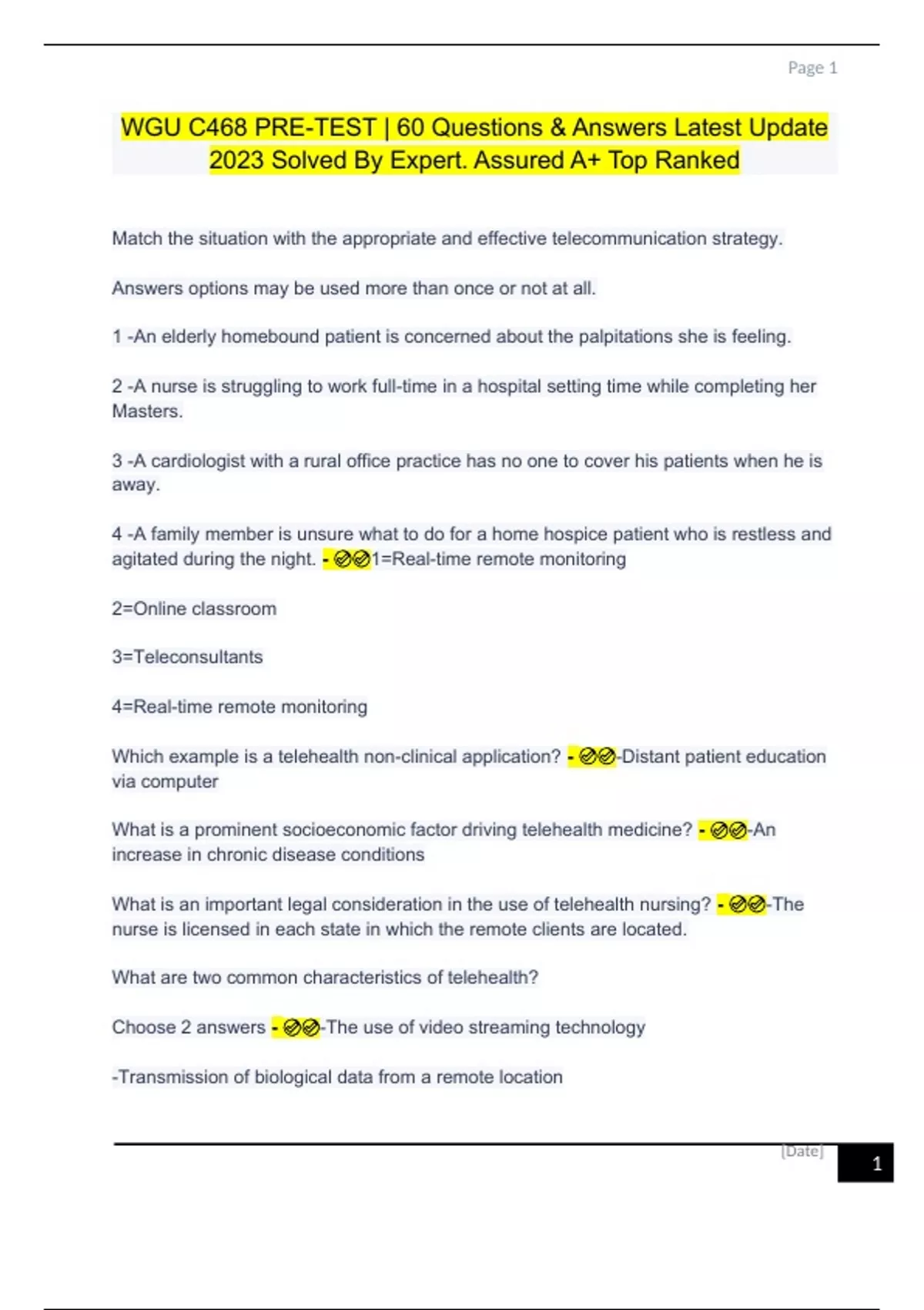 WGU C468 PRE-TEST 60 Questions & Answers Latest Update 2023 Solved By Expert. Assured A+ Top R