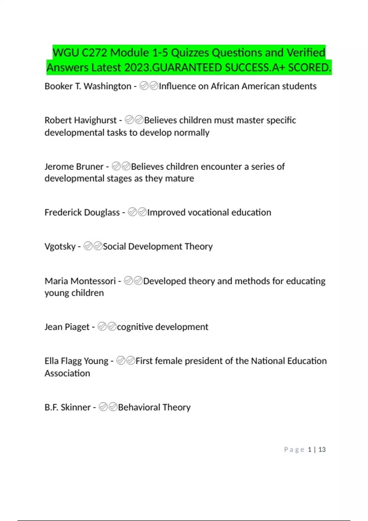 WGU C272 Module 1-5 Quizzes Questions and Verified Answers Latest 2023.GUARANTEED SUCCESS.A+ SCORED.docx