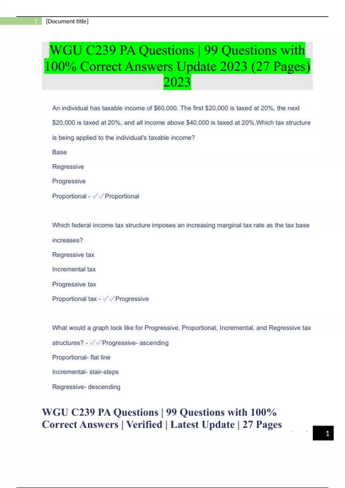 WGU C239 PA Questions 99 Questions with 100% Correct Answers Update 2023 (27 Pages) 2023.