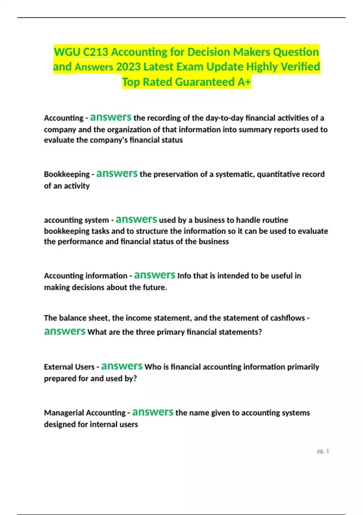 WGU C213 Accounting for Decision Makers Question and Answers 2023 Latest Exam Update Highly Verified Top Rated Guaranteed A+.docx