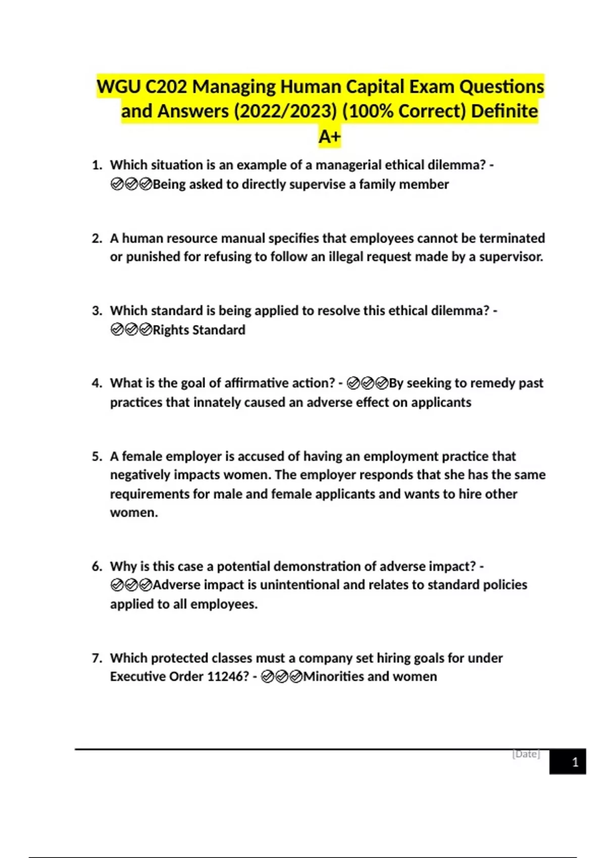 WGU C202 Managing Human Capital Exam Questions and Answers () (100% Correct) Definite A+.docx WGU C202 Managing Human Capital Exam Questions and Answers () (100% Correct) Definite A+.docx