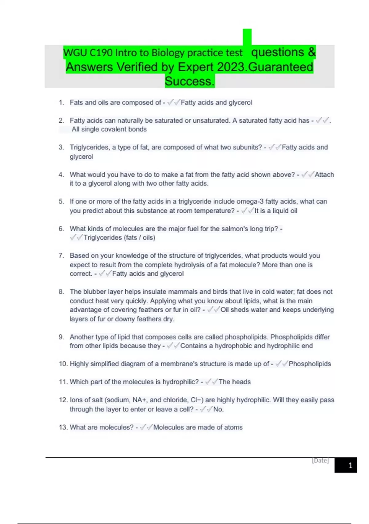 WGU C190 Intro to Biology practice test questions & Answers Verified by Expert 2023.Guaranteed Success..docx