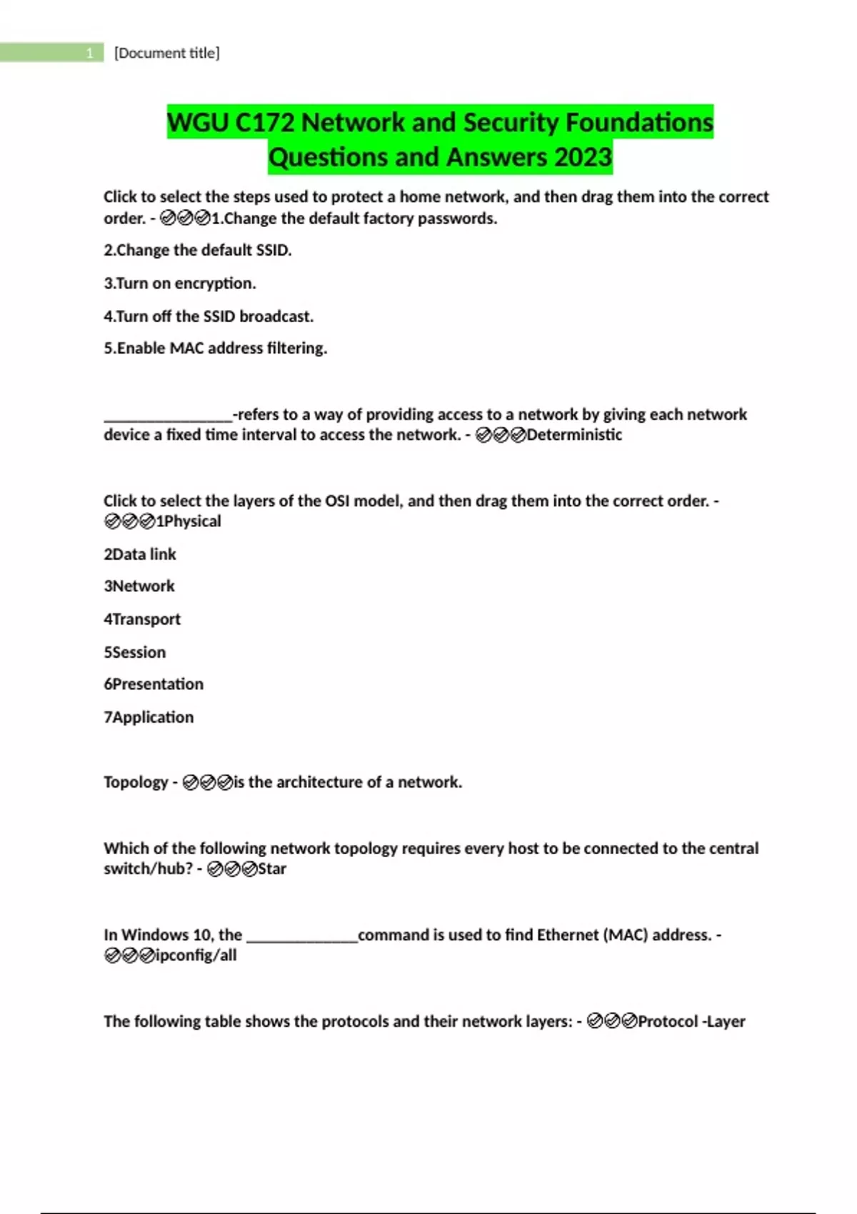 WGU C172 Network and Security Foundations Questions and Answers 2023.WGU C172 Network and Security Foundations Questions and Answers 2023.