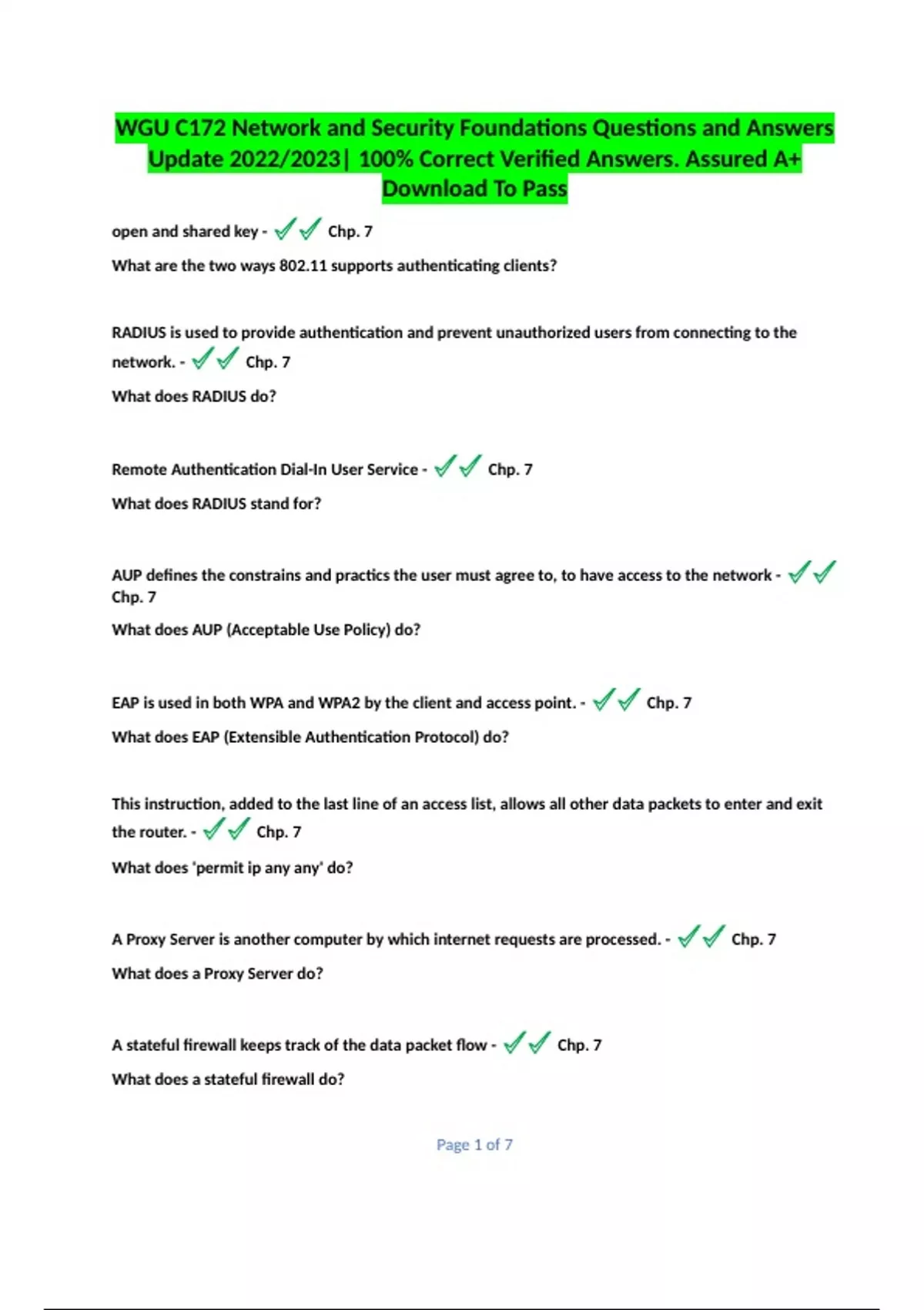 WGU C172 Network and Security Foundations Questions and Answers Update % Correct Verified Answers. Assured A+ Download To P WGU C172 Network and Security Foundations Questions and Answers Update % Correct Verified Answers. Assured A+ Download To P