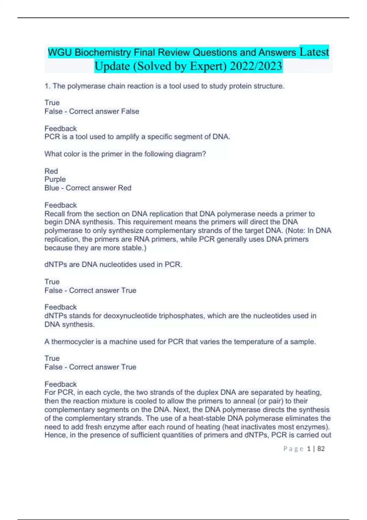 WGU Biochemistry Final Review Questions and Answers Latest Update (Solved by Expert) .