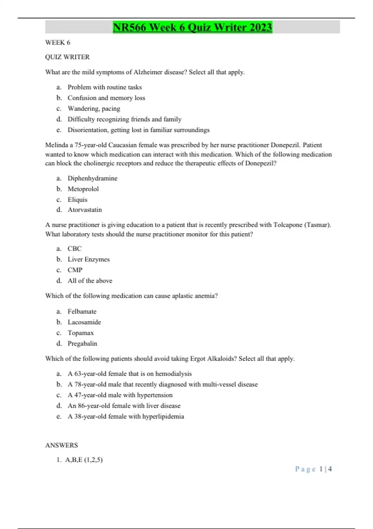 NR566 Week 6 Quiz Writer 2023.NR566 Week 6 Quiz Writer 2023.