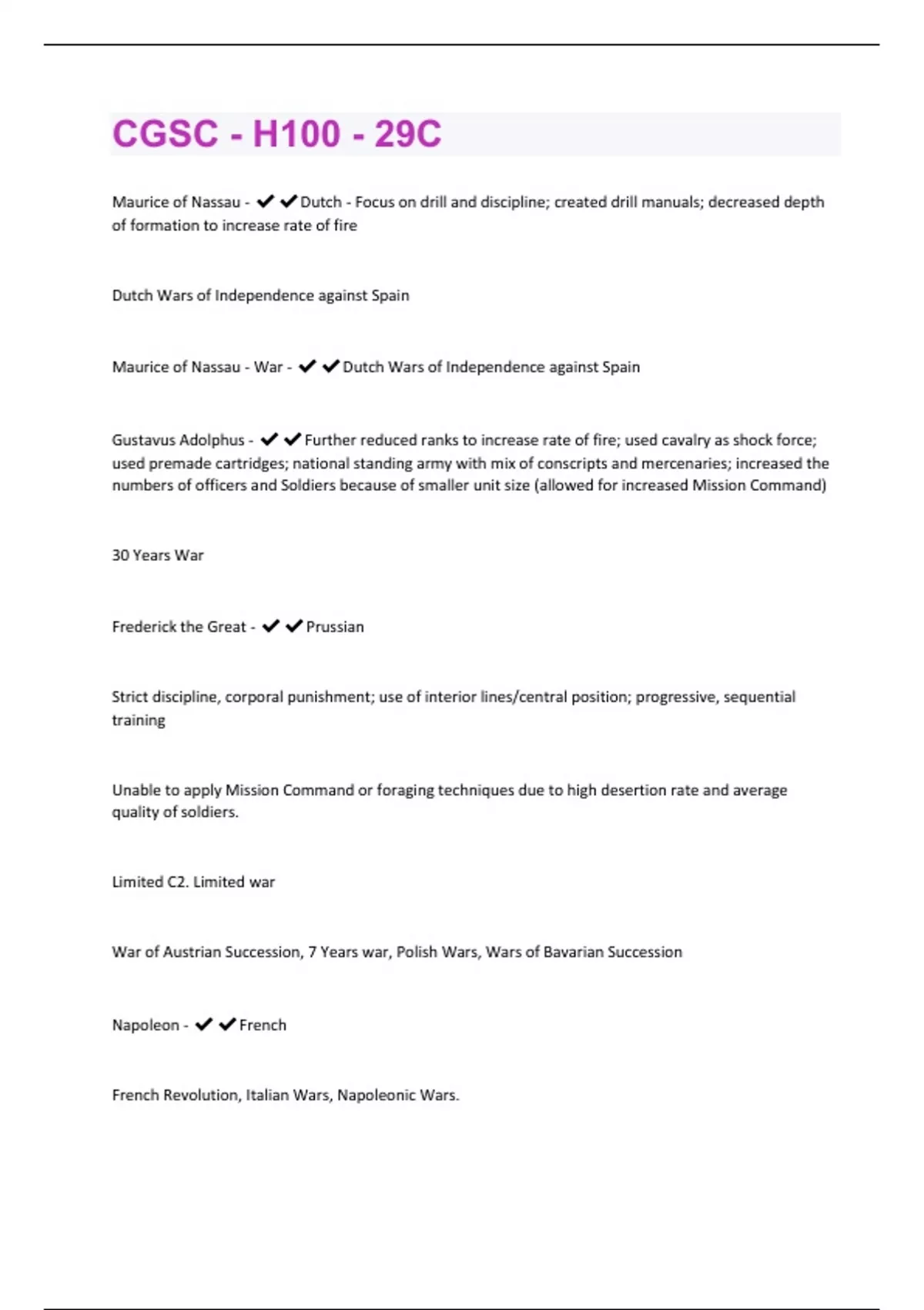 CGSC - H100 - 29C Questions and Answers(A+ Solution guide)