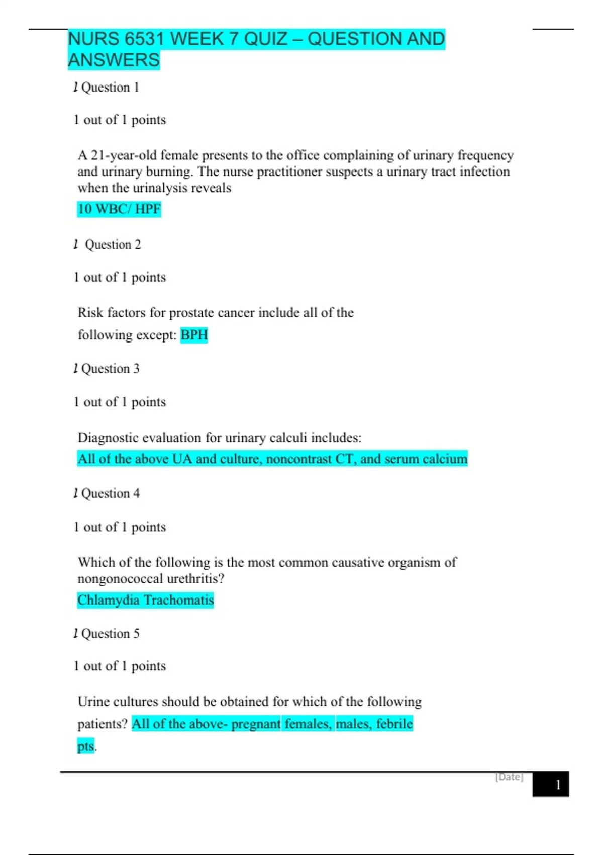 NURS 6531 WEEK 7 QUIZ – QUESTION AND ANSWERS.