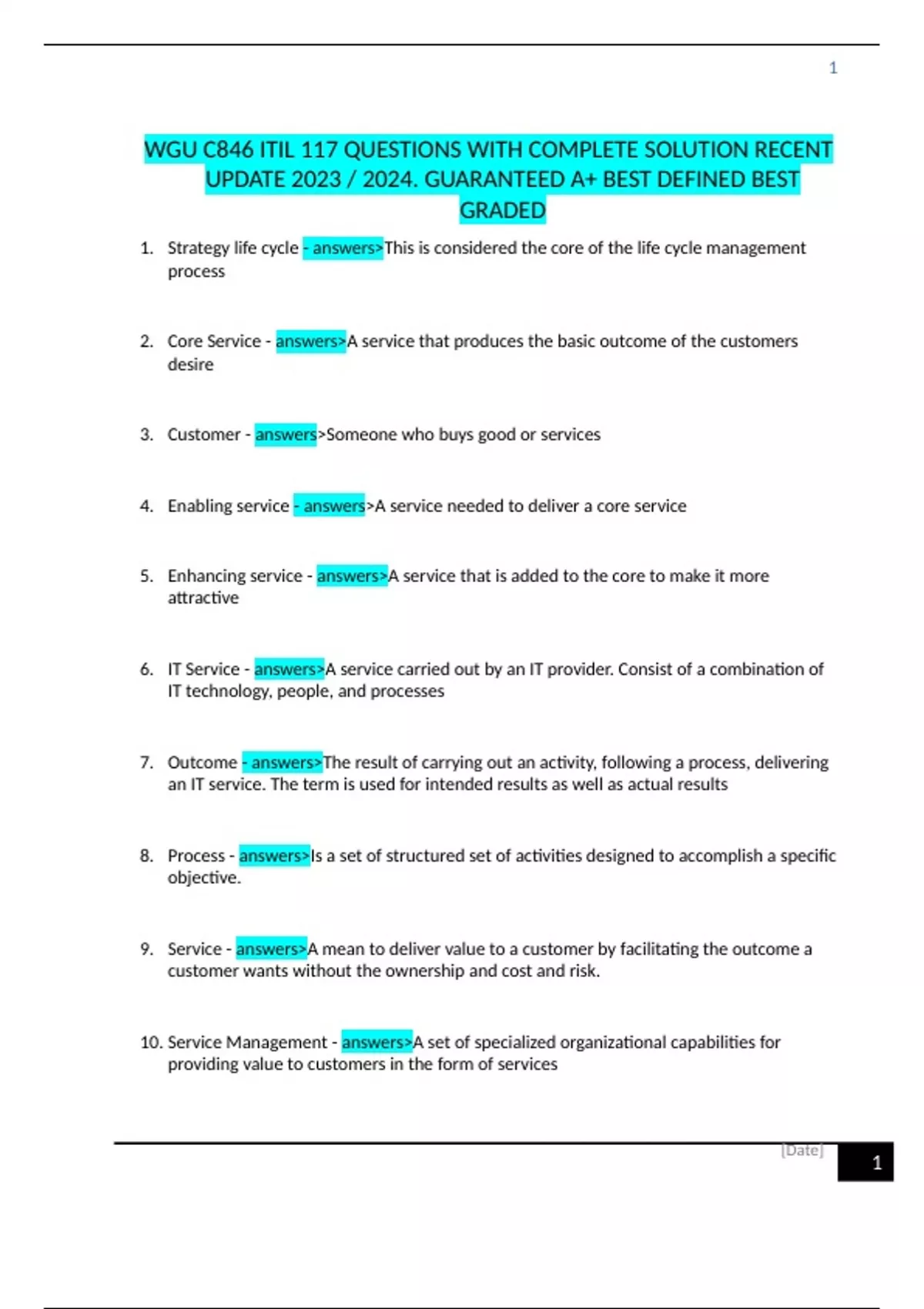 WGU C846 ITIL 117 QUESTIONS WITH COMPLETE SOLUTION RECENT UPDATE . GUARANTEED A+ BEST DEFINED BEST GRADED.