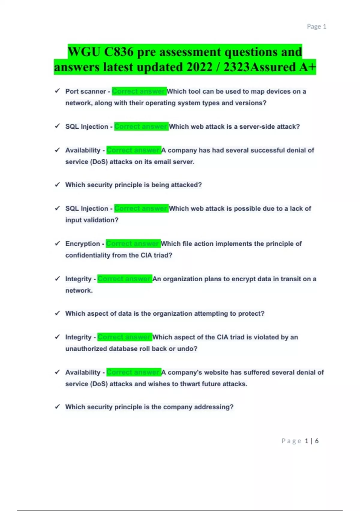 wgu c836 pre assessment questions and answers late