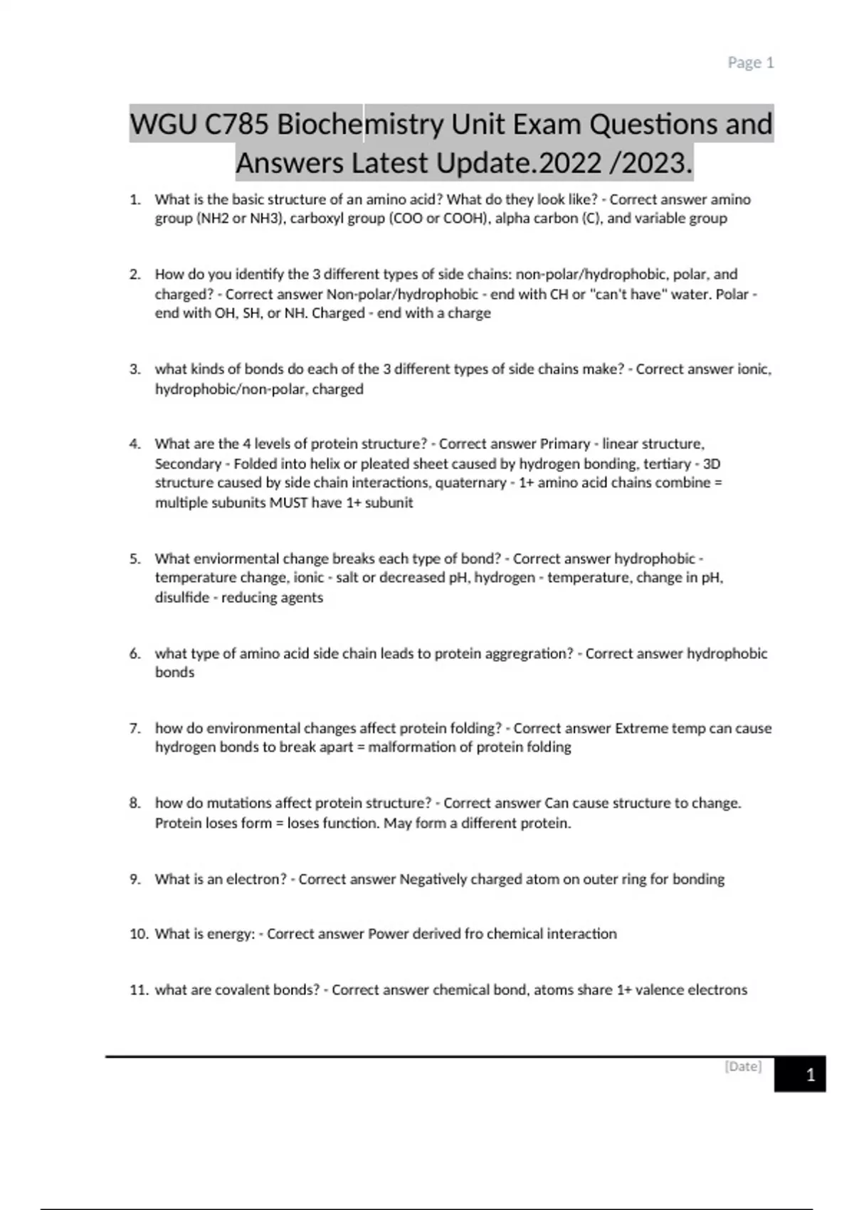 WGU C785 Biochemistry Unit Exam Questions and Answers Latest Update...