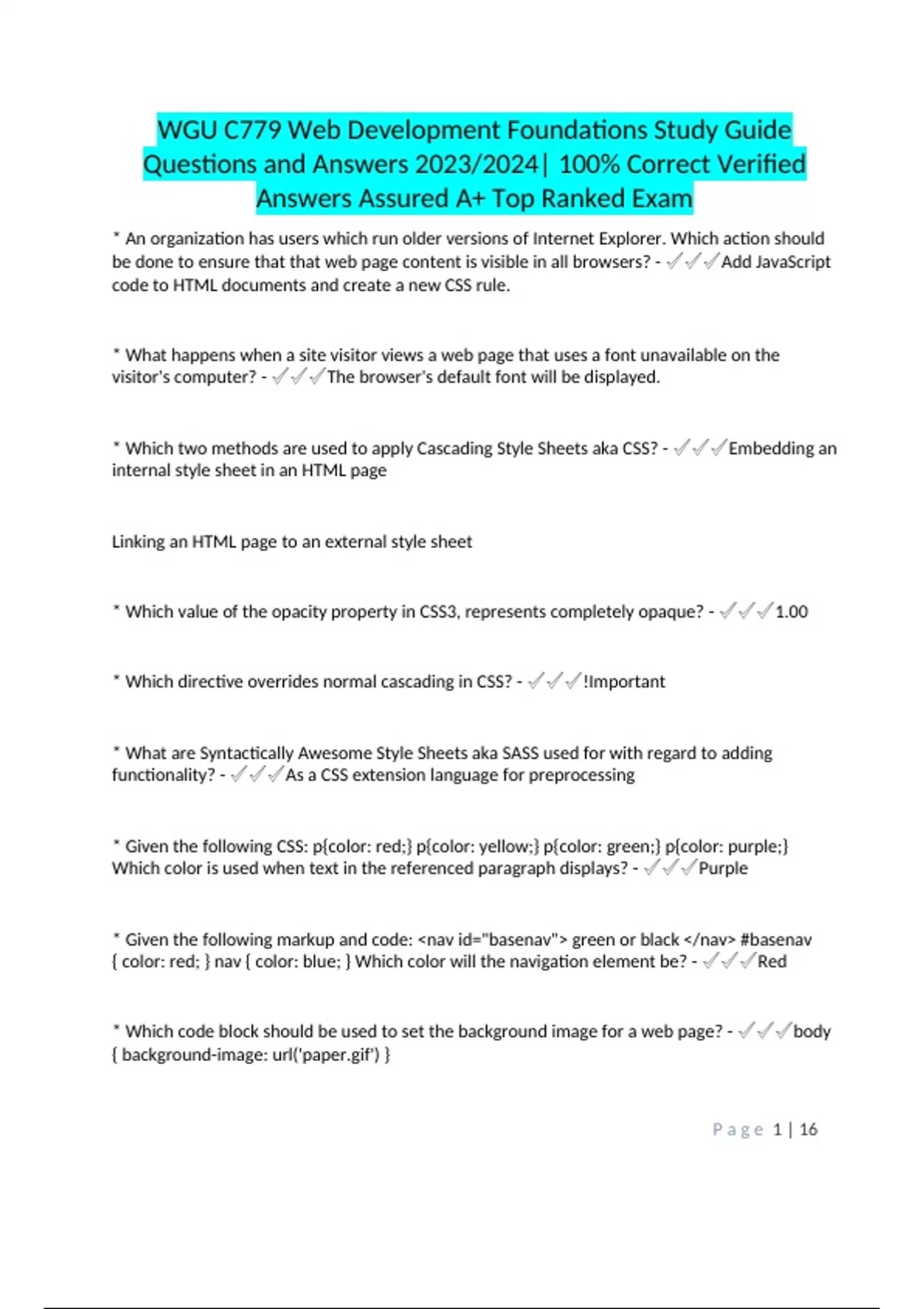 WGU C779 Web Development Foundations Study Guide Questions and Answers % Correct Verified Answers Assured A+ Top Ranked E