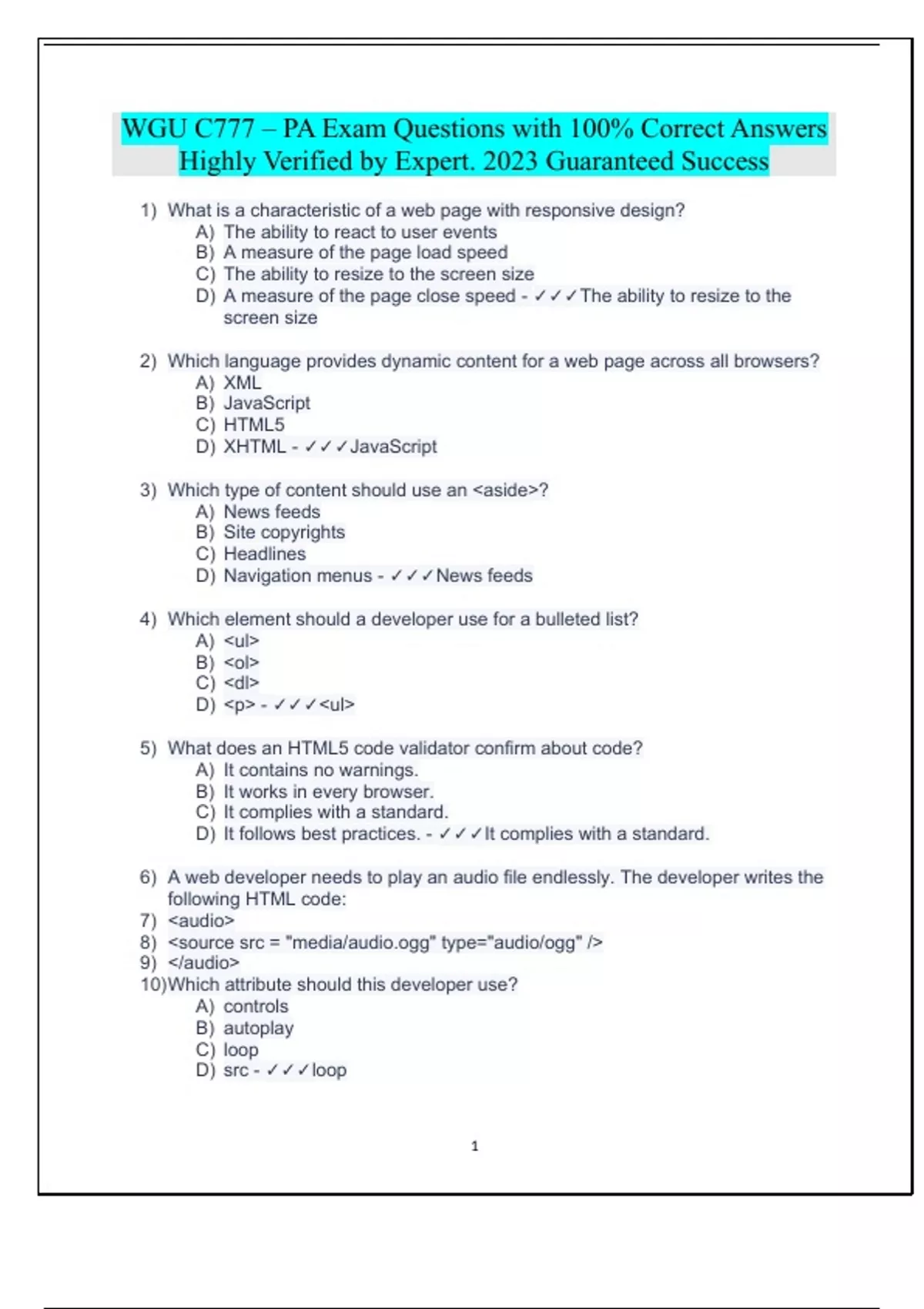 WGU C777 – PA Exam Questions with 100% Correct Answers Highly Verified by Expert. 2023 Guaranteed Success.