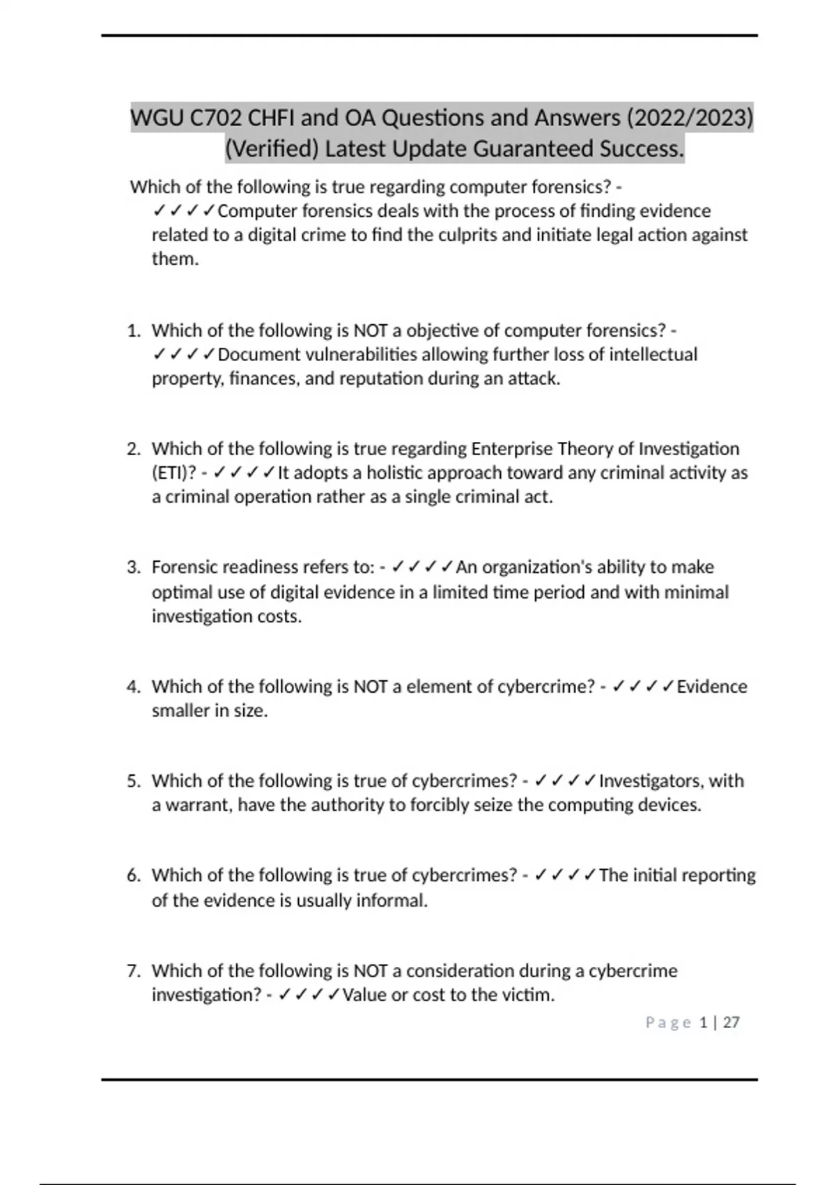 WGU C702 CHFI and OA Questions and Answers () (Verified) Latest Update Guaranteed Success..docx